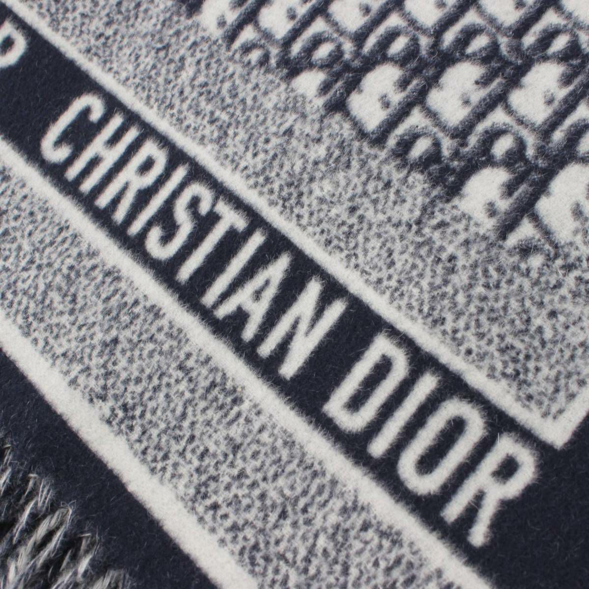クリスチャンディオール Christian Dior オブリーク ロゴ ヴァージンウール×アンゴラ 大判ストール ブランケット ネイビー