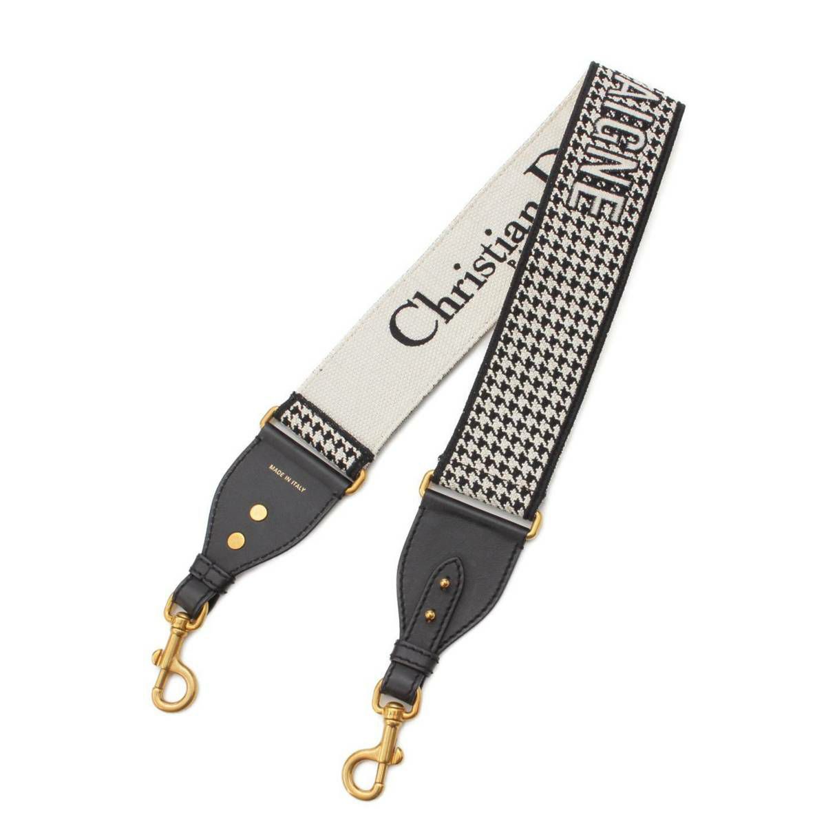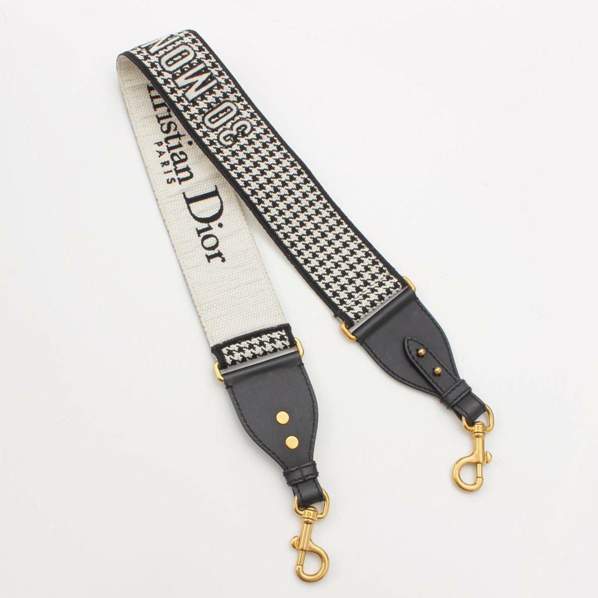 クリスチャンディオール Christian Dior 30 Montaigne ロゴ レザー×キャンバス ショルダーストラップ ブラック×ホワイト