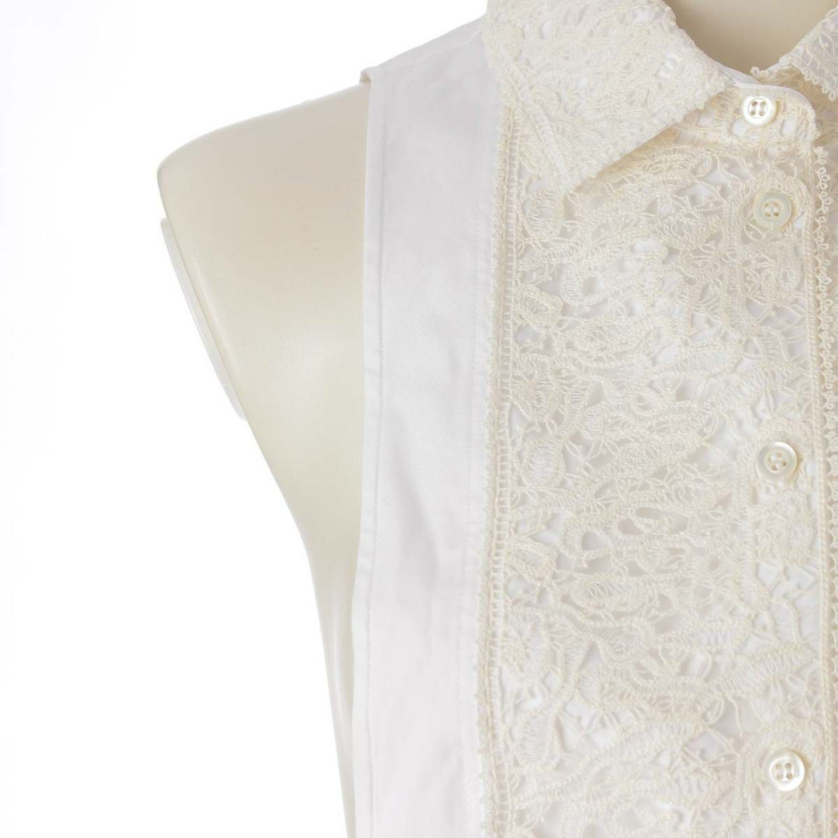 クリスチャンディオール Christian Dior レース シャツ ジレ ベスト ノースリーブシャツ 121B69B3356 ホワイト 34