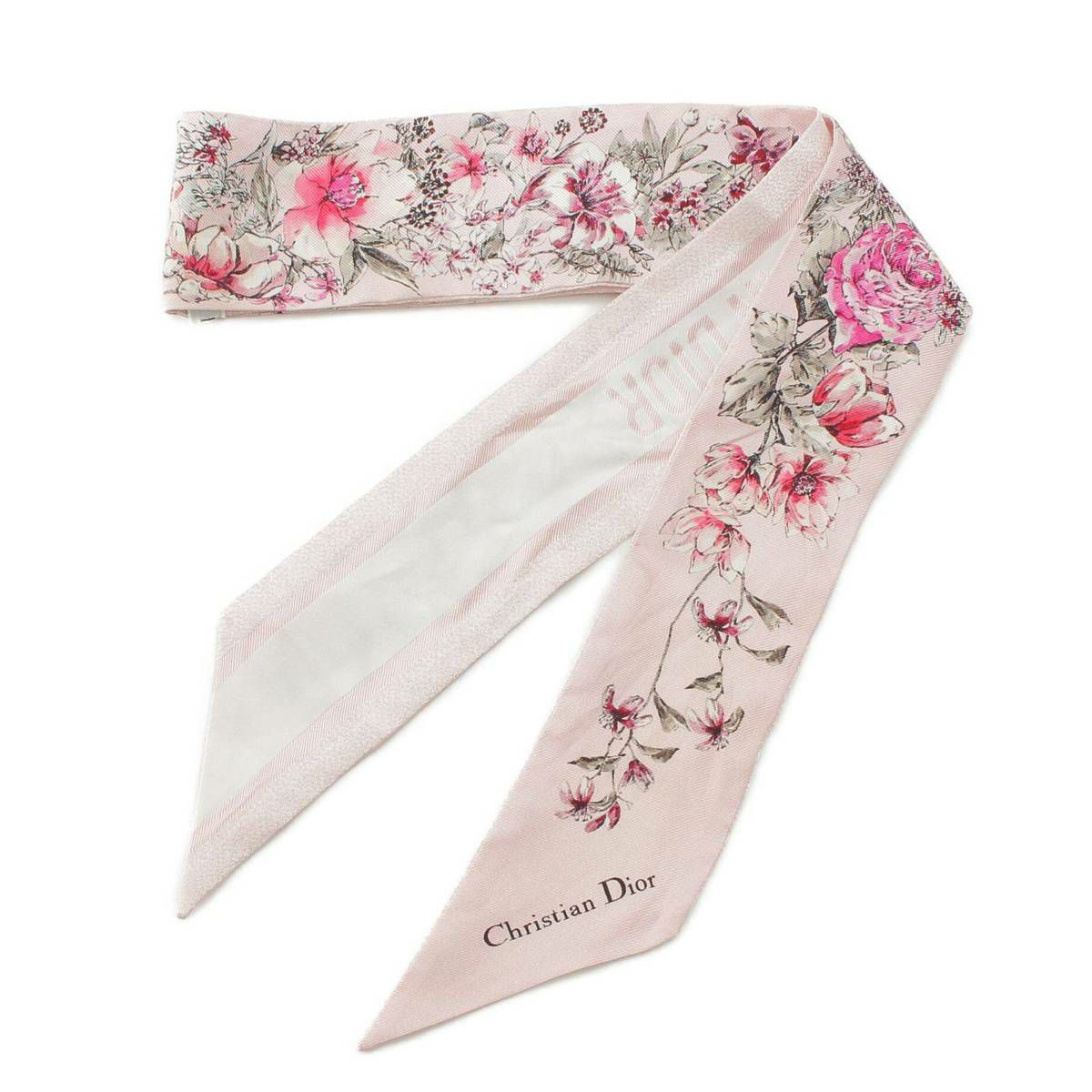 クリスチャンディオール Christian Dior D-Floral ミッツァ 花 フラワー シルクツイル スカーフ ストール ピンク