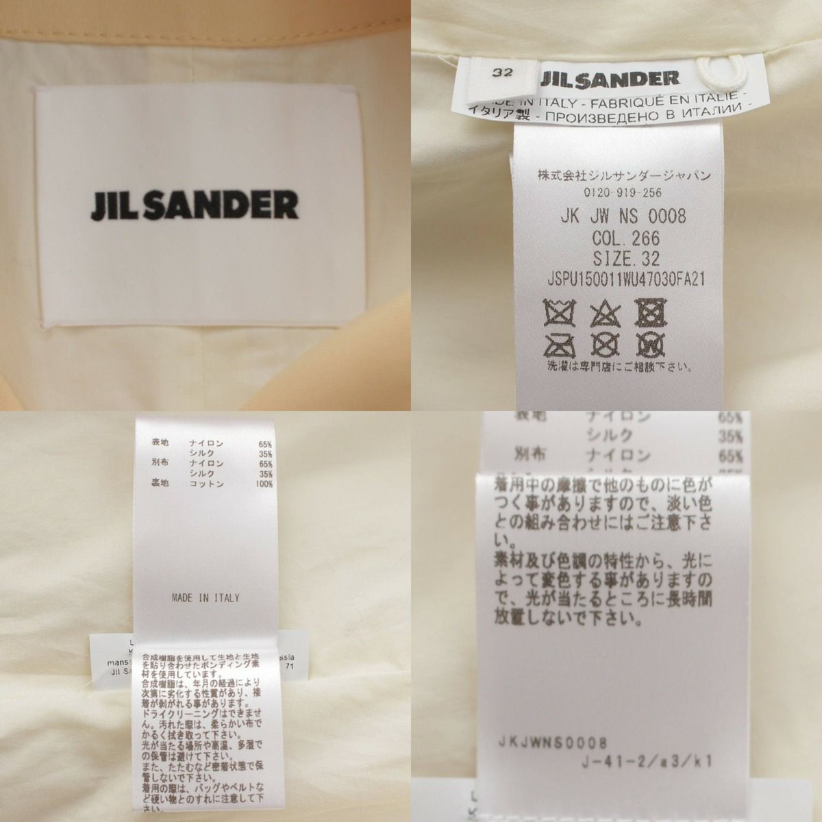 ジルサンダー Jil Sander ナイロン ケープコート ジャケット バイカラー アイボリー×ブラック 32