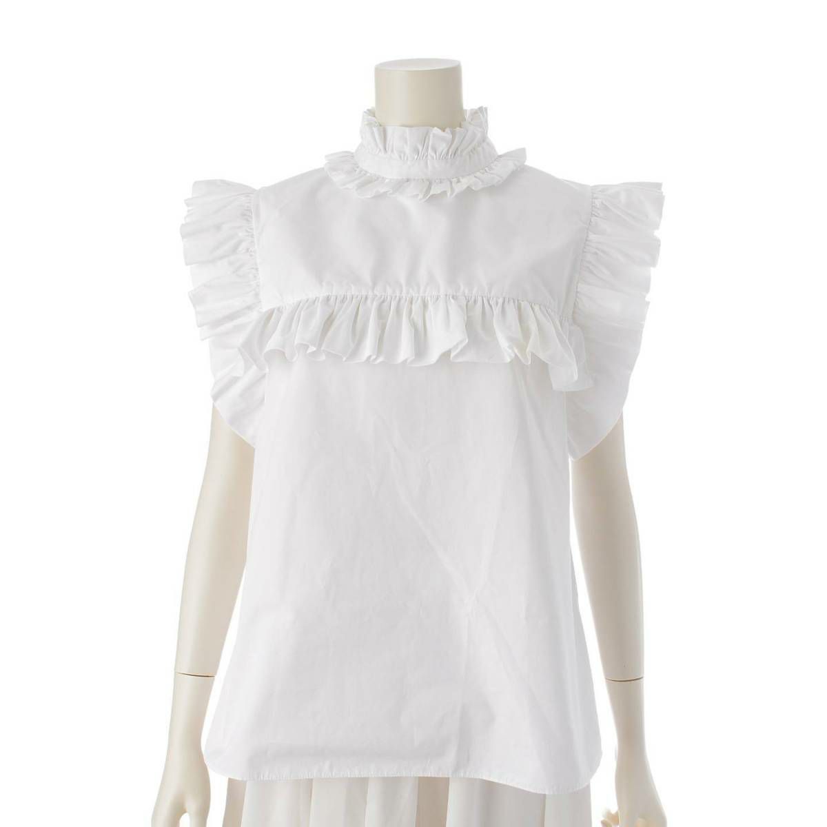 ジルサンダー Jil Sander ノースリーブ コットン フリルシャツ ブラウス トップス J01NC0101 ホワイト 34