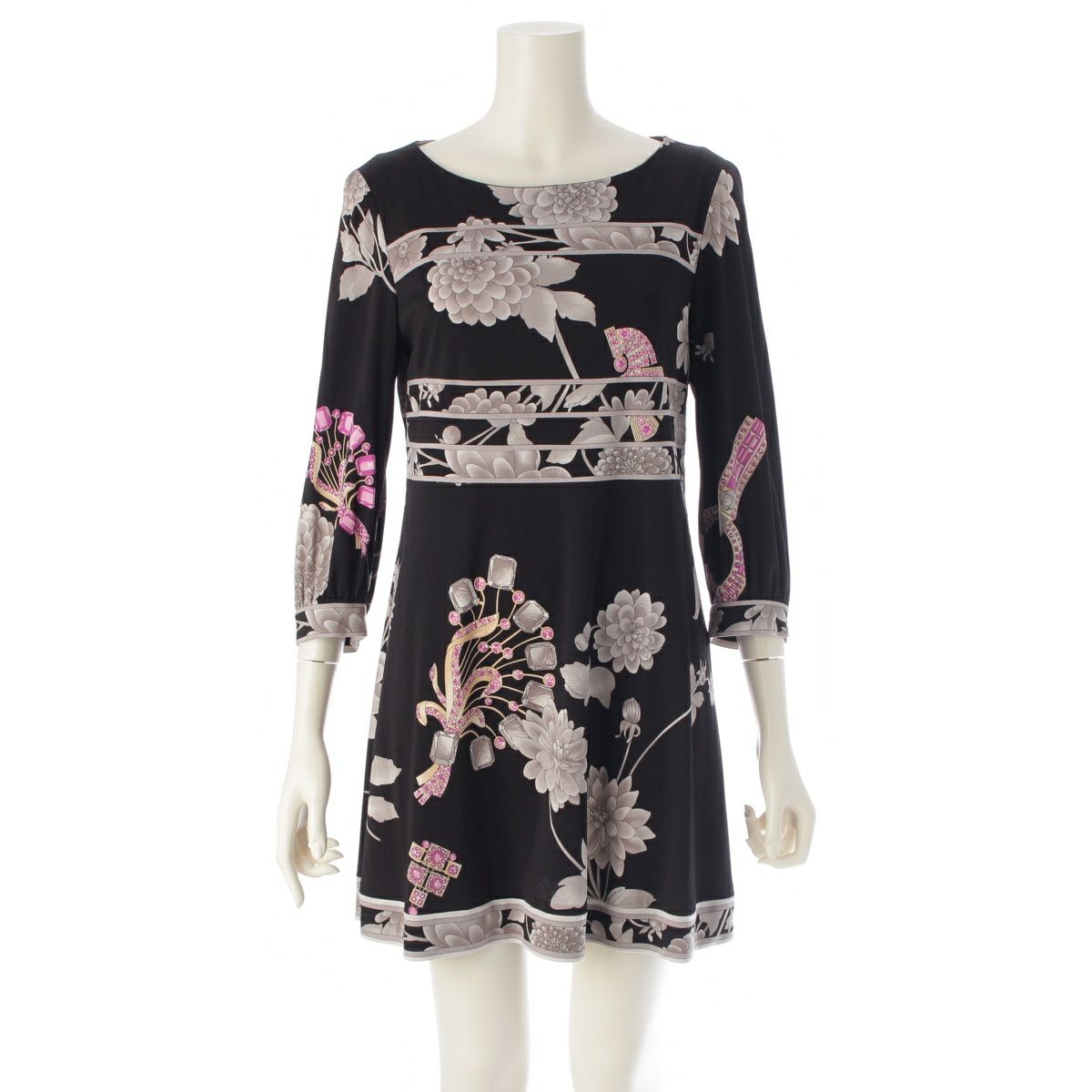 レオナール カンカン素材 花 宝石柄 ワンピース ドレス 0189213 マルチカラー 38