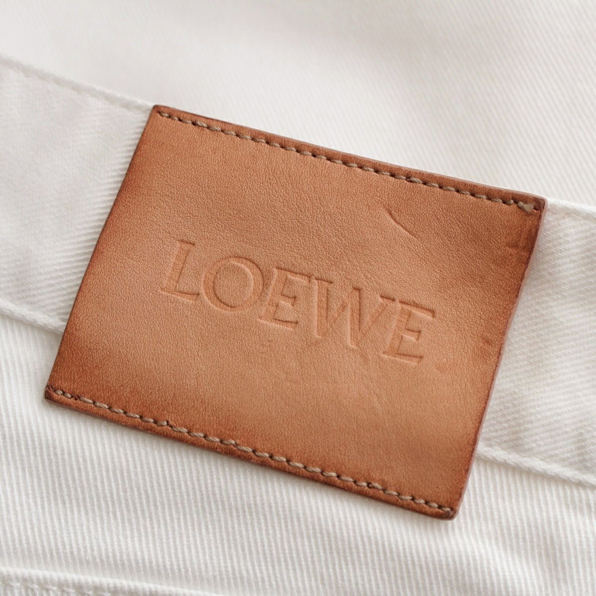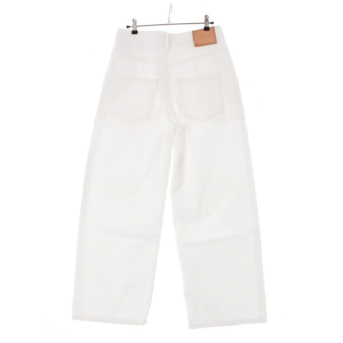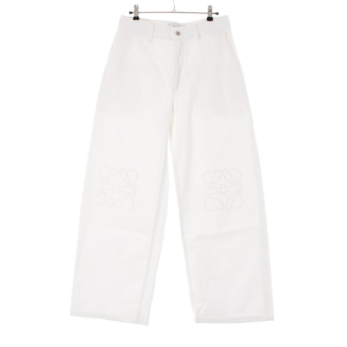 ロエベ コットン アナグラムパイル地パッチ ジップフライ ワイド デニムパンツ ボトムス ホワイト 36