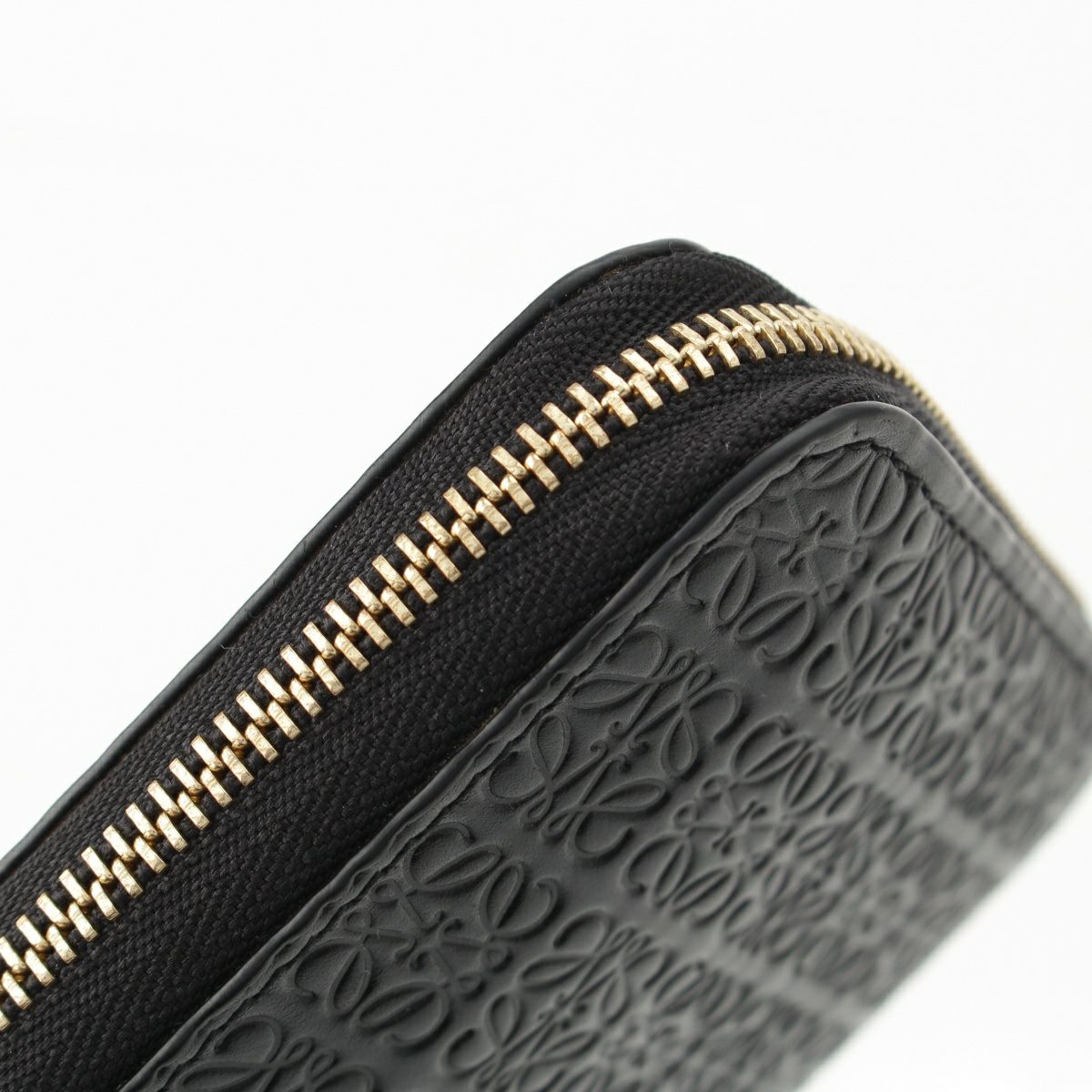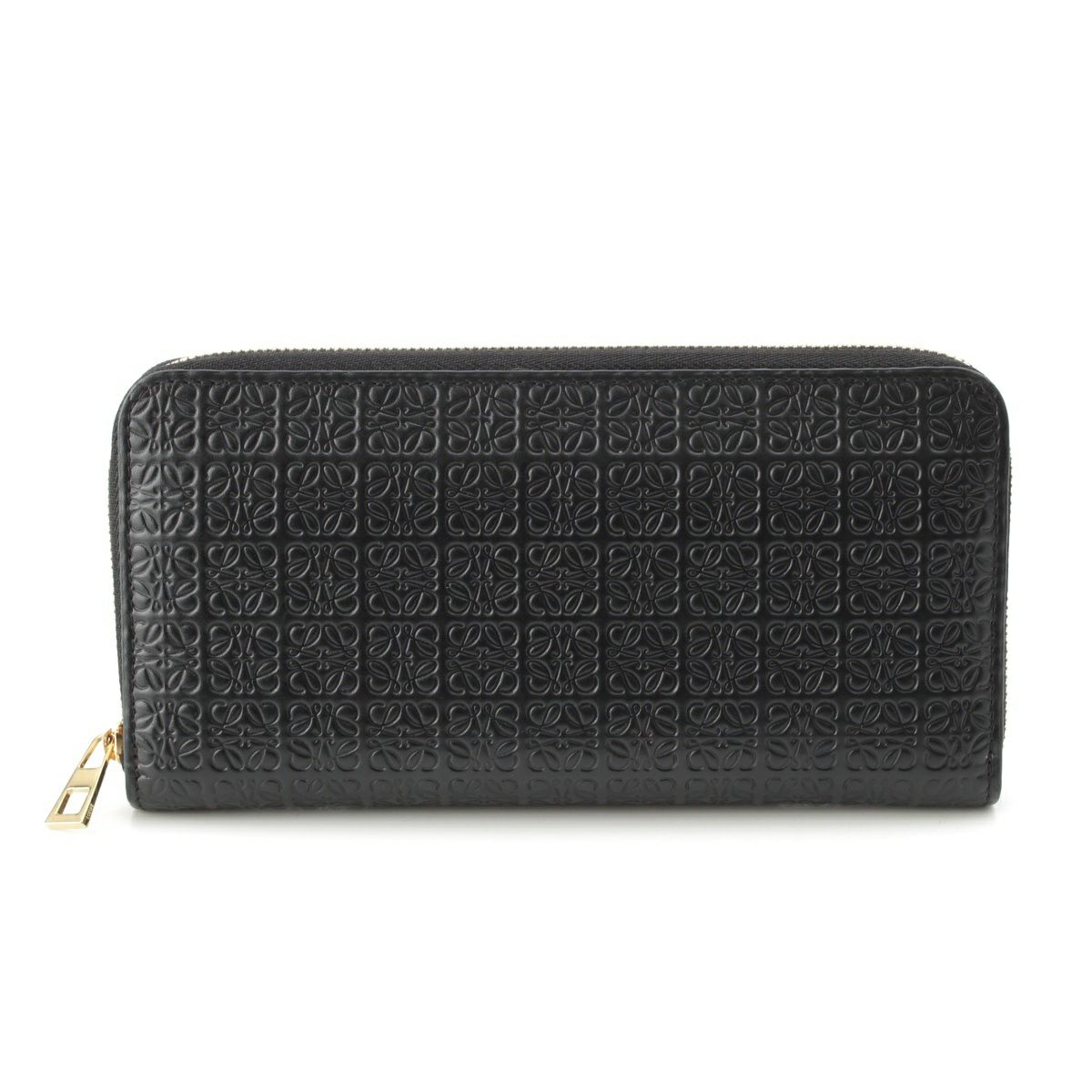 ロエベ レザー リピートアナグラム ラウンドファスナー 長財布 ウォレット ブラック