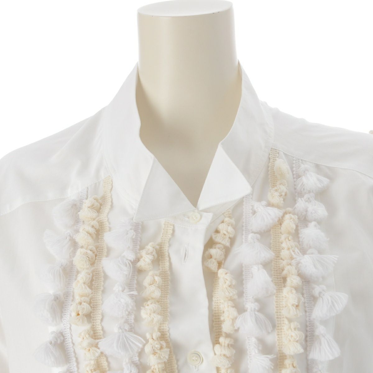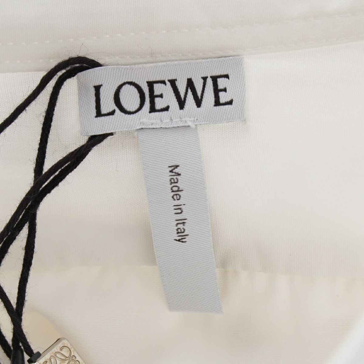 ロエベ タッセル ポンポン付き ウエストリボン ロング シャツ ワンピース ドレス ホワイト 36