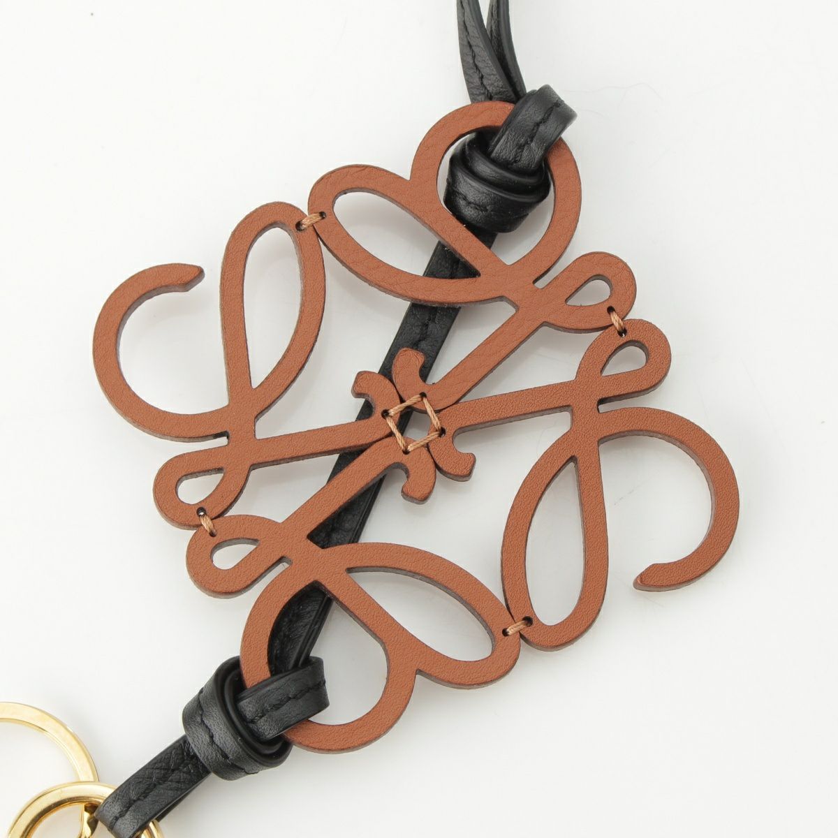 ロエベ レザー アナグラム バッグチャーム ストラップ C621232X83 タン ブラウン ブラック