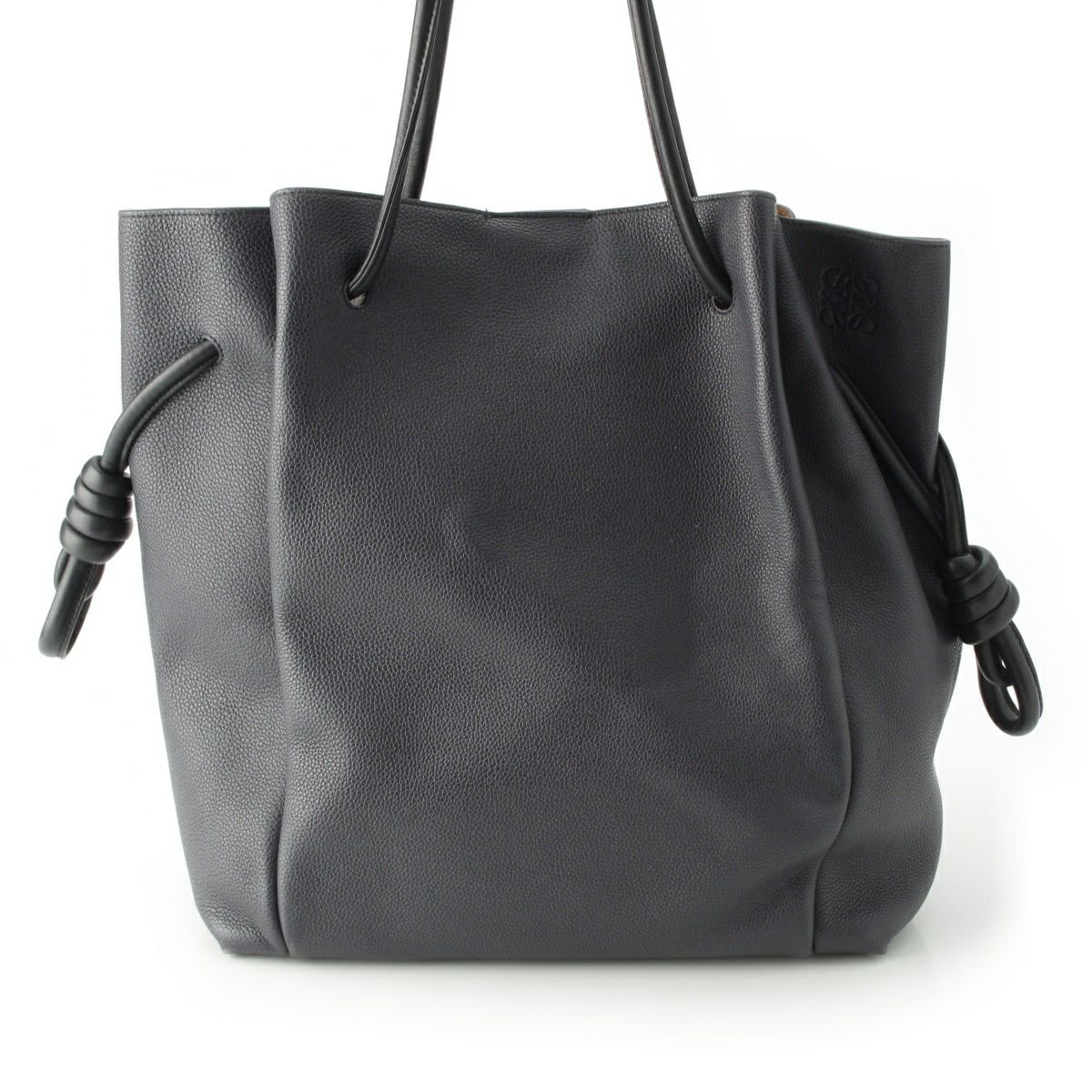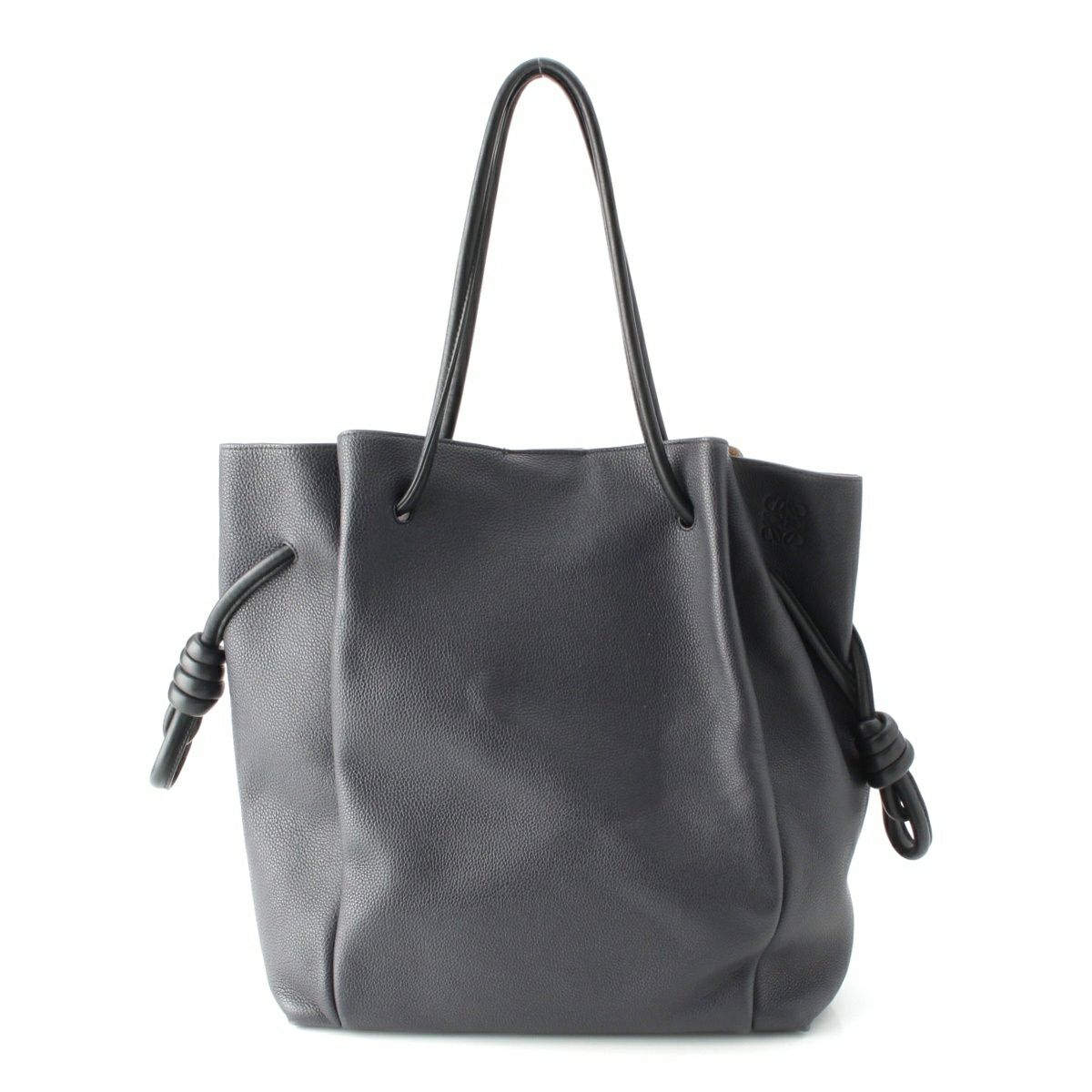ロエベ フラメンコノット レザー トート ハンドバッグ グレー