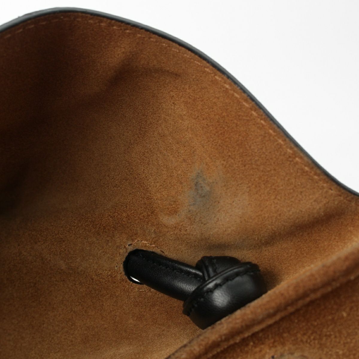 ダメージ箇所: 表面に擦れ/型崩れ、コバに劣化、内側に汚れ/変色/毛羽立ち、