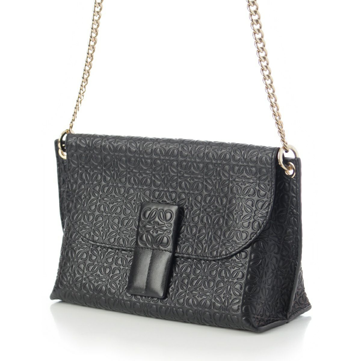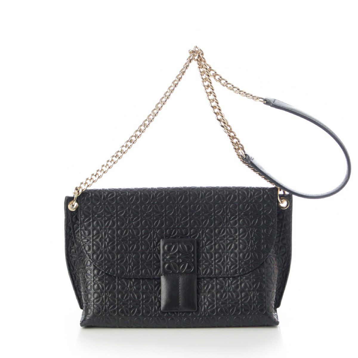 ロエベ アベニュー レザー リピートアナグラム チェーン ショルダーバッグ ブラック ゴールド金具