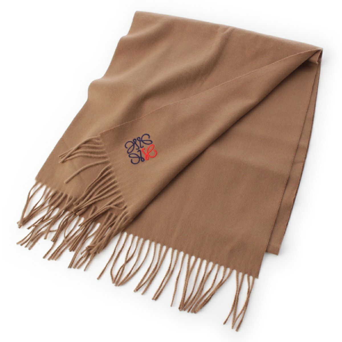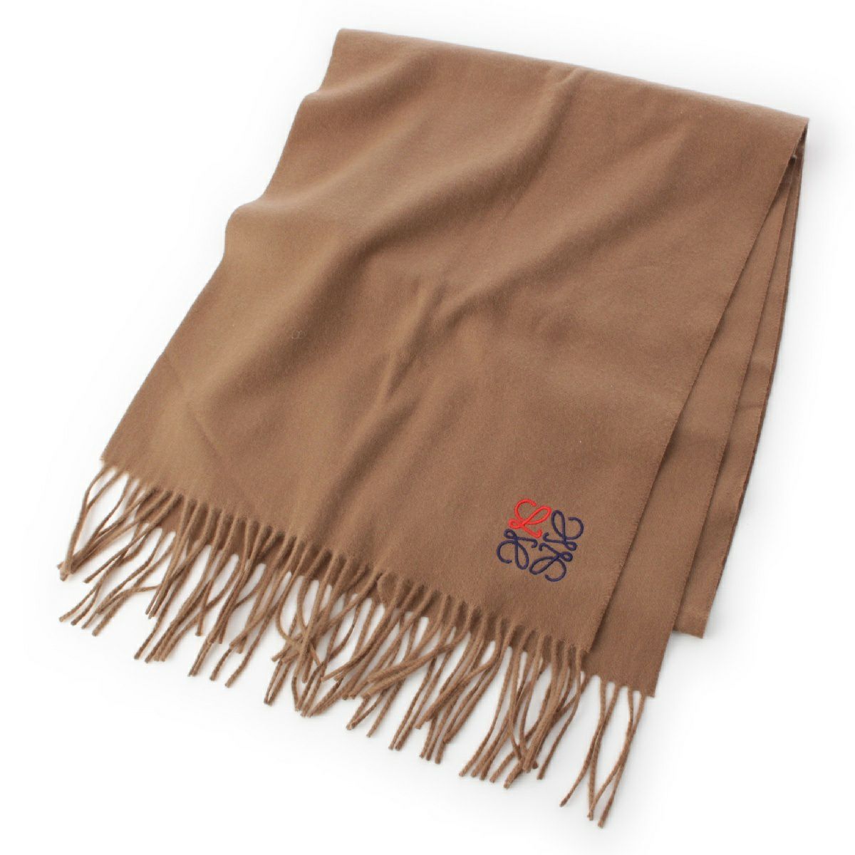 ロエベ カシミヤ アナグラム ロゴ刺繍 フリンジ マフラー ストール ショール F000914X04 ブラウン