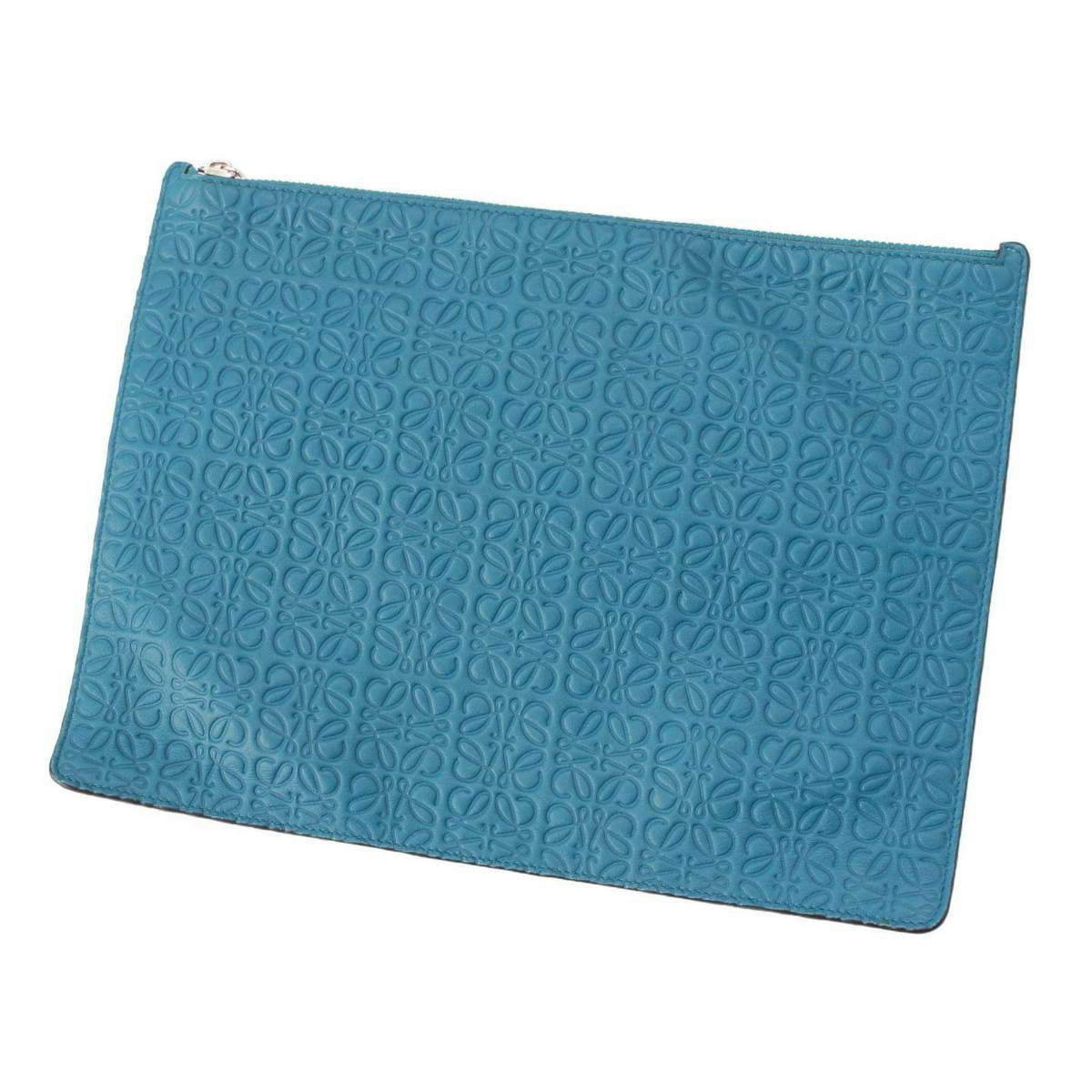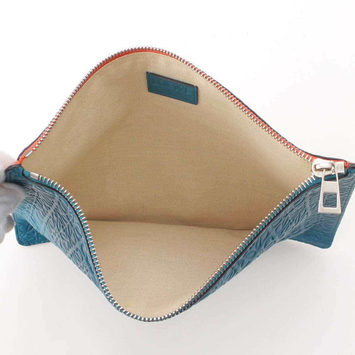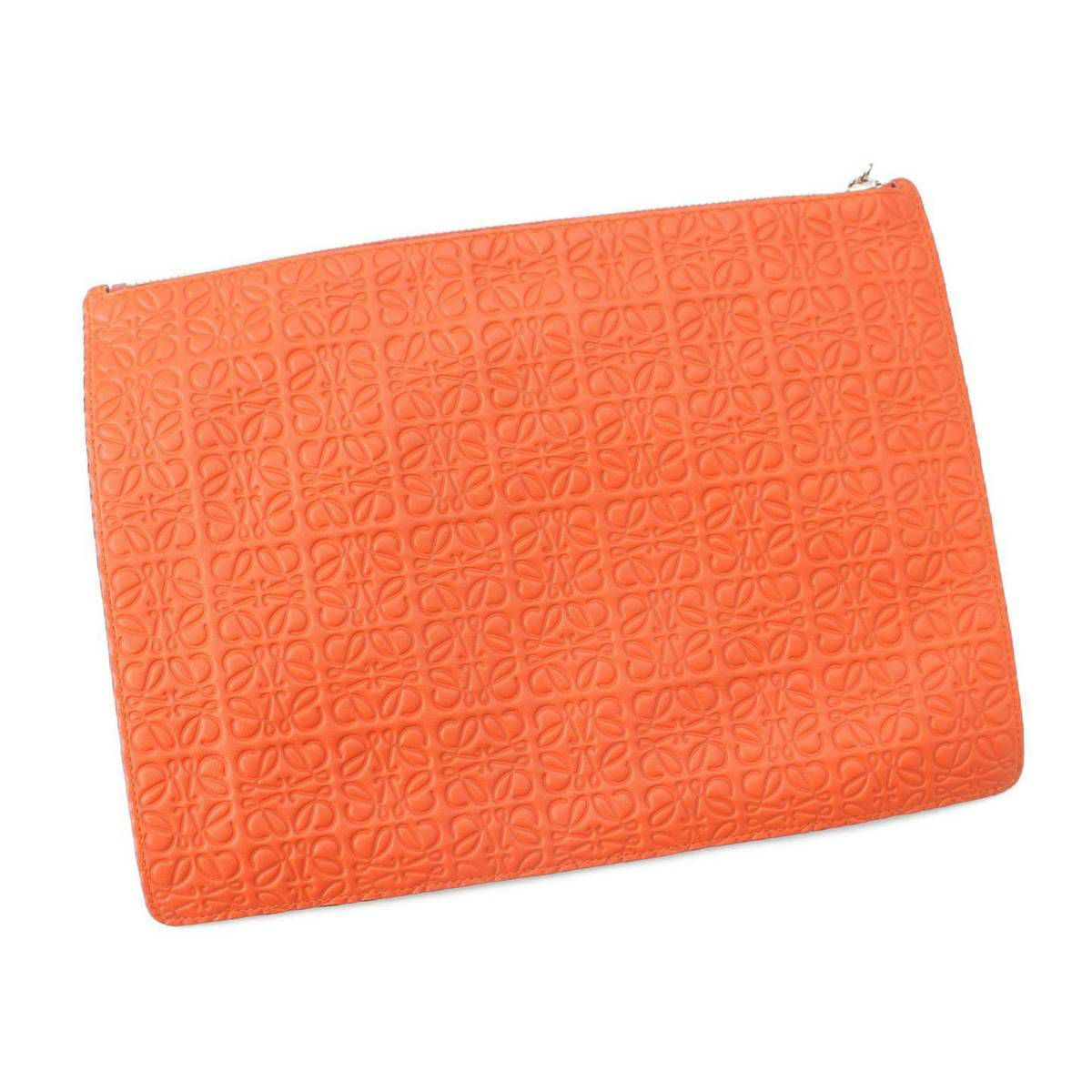 ロエベ Loewe アナグラム レザー クラッチバッグ バイカラー 521711 オレンジ×ブルー
