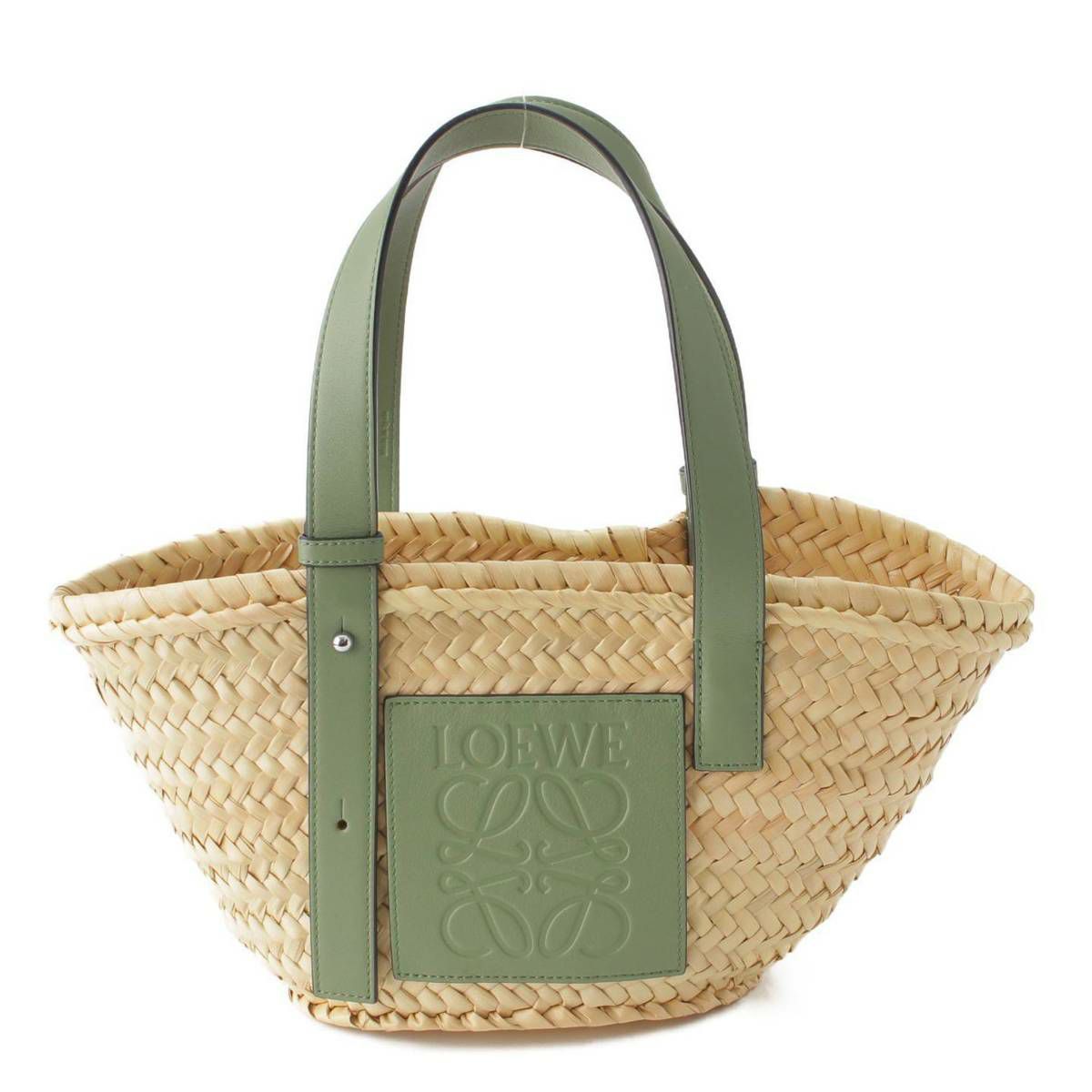 ロエベ Loewe アナグラム バスケット スモール カゴバッグ ハンドバッグ グリーン×ベージュ