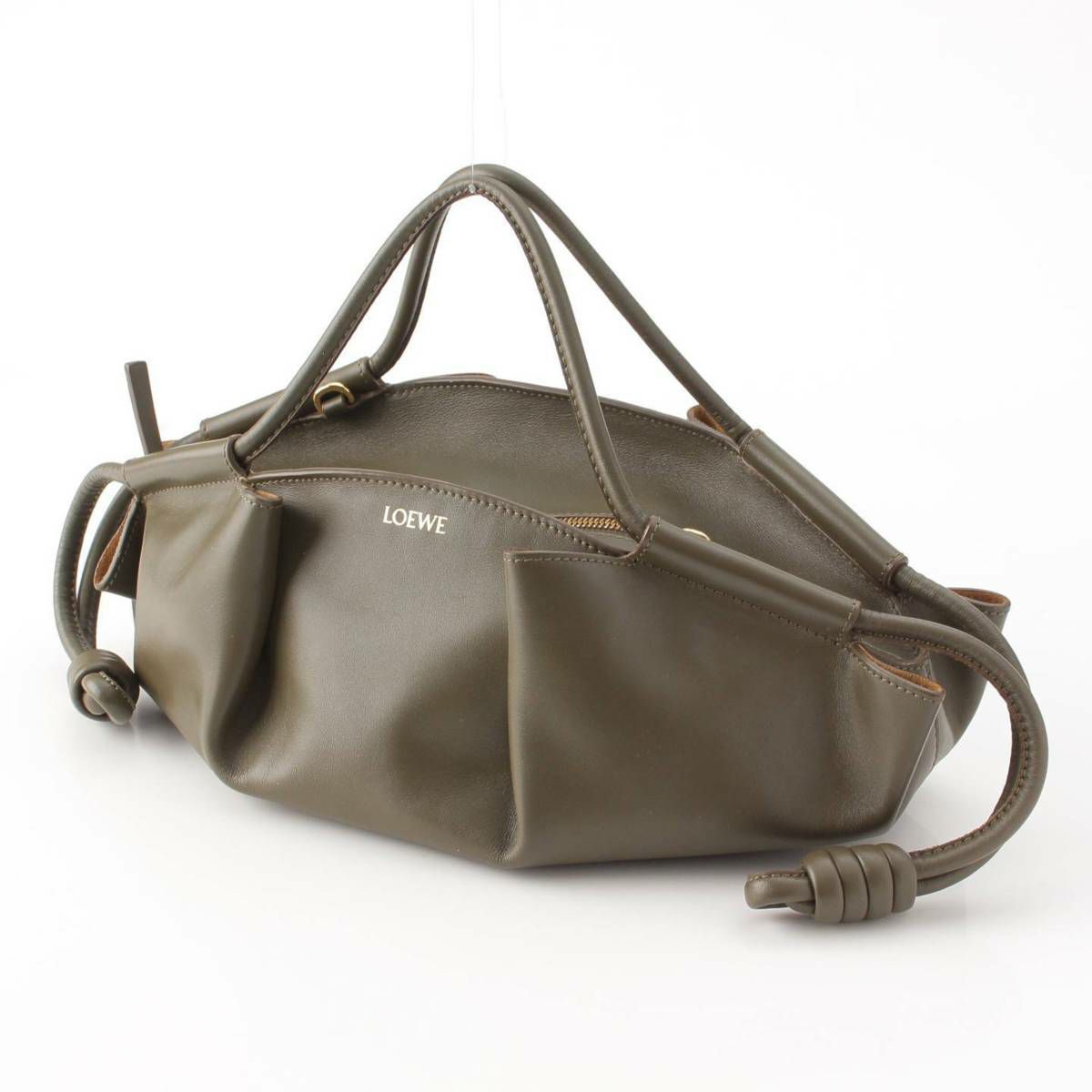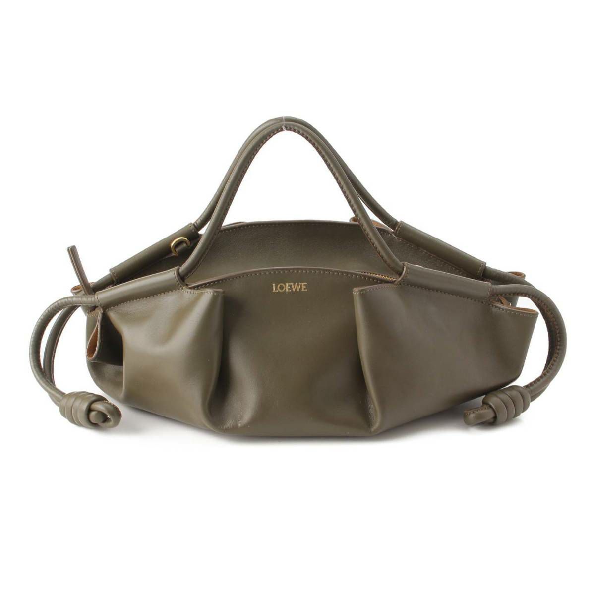 ロエベ Loewe シャイニー ナパカーフ パセオ スモール ハンドバッグ A709W15X02 カーキ