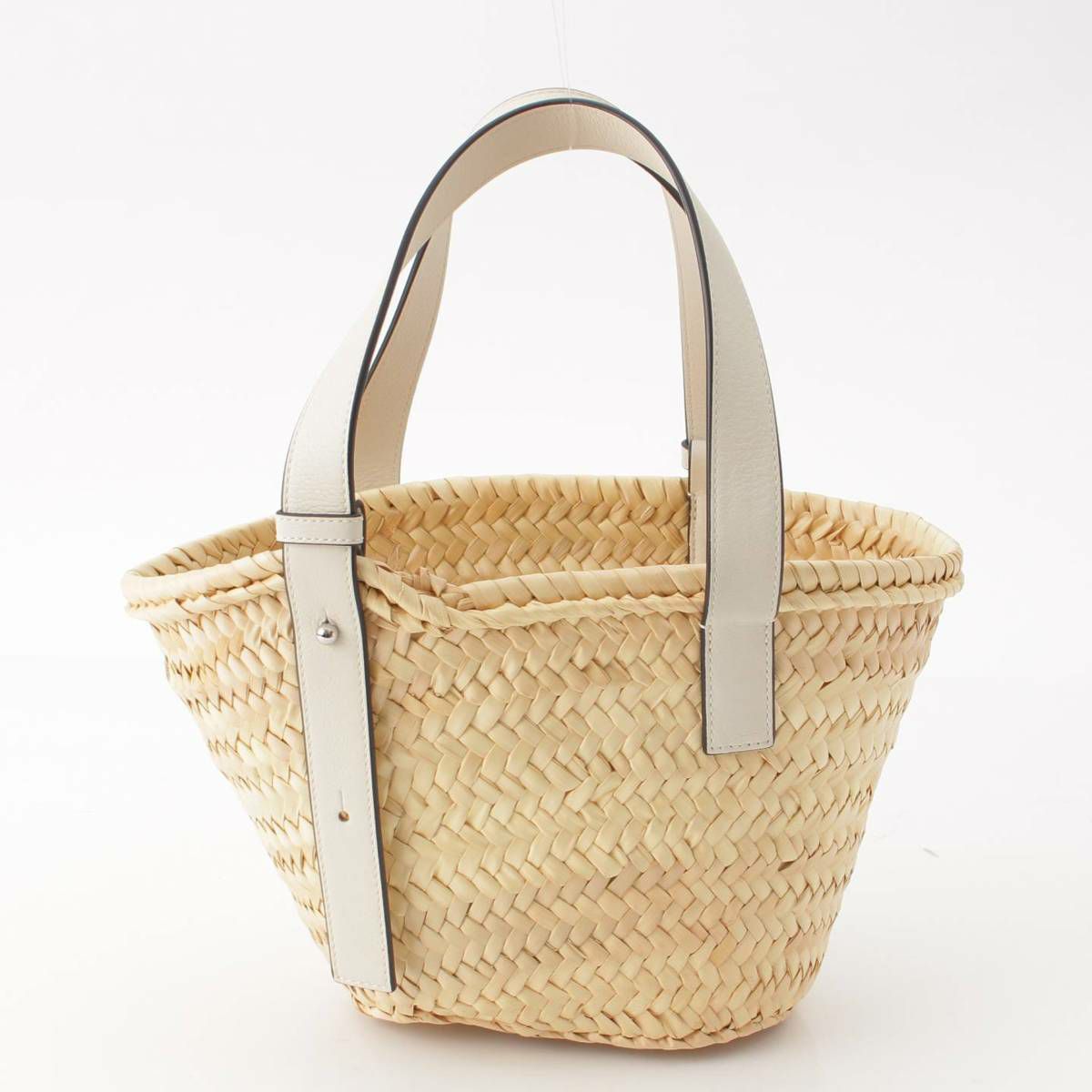 ロエベ Loewe アナグラム バスケット スモール ラフィア×レザー カゴ ハンド バッグ ホワイト