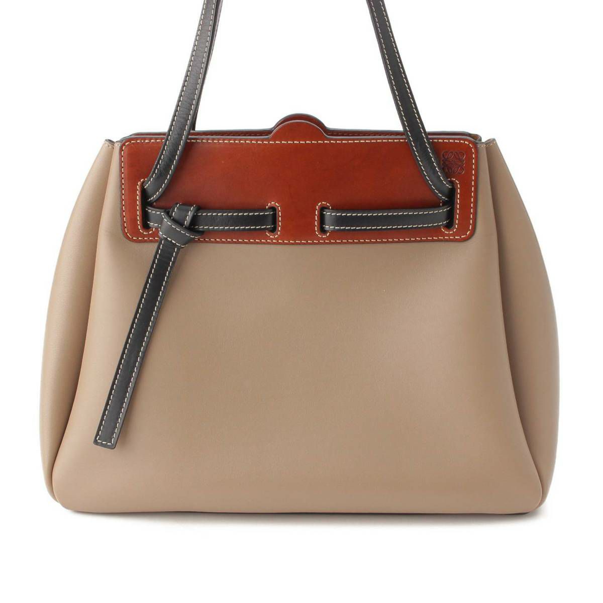 ロエベ Loewe ラゾ レザー ツートンカラー ステッチ ロゴ ハンドバッグ ショルダーバッグ ベージュ