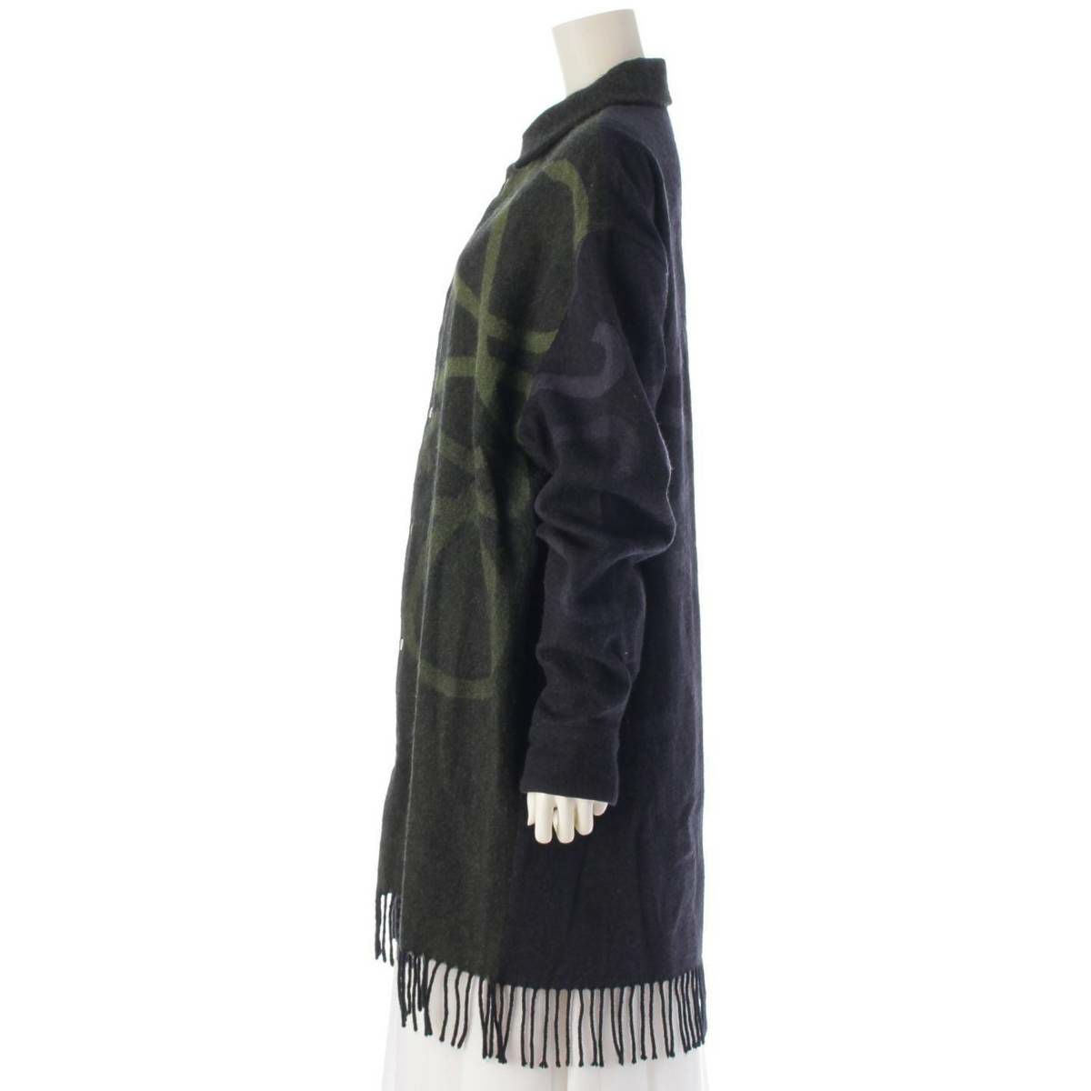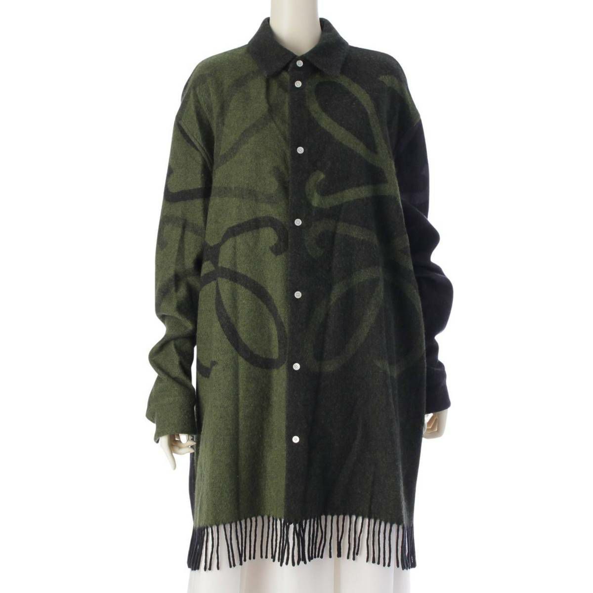 ロエベ Loewe アナグラム カシミヤ混 ウール フリンジ ロングシャツ トップス グリーン S