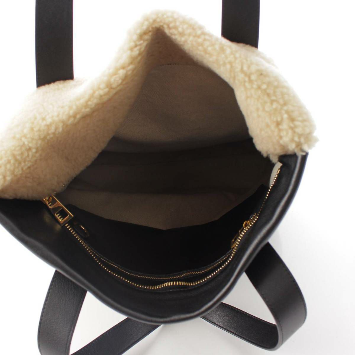 ロエベ Loewe アナグラム ロゴ ムートン トートバッグ ハンドバッグ バッグ ベージュ ブラック
