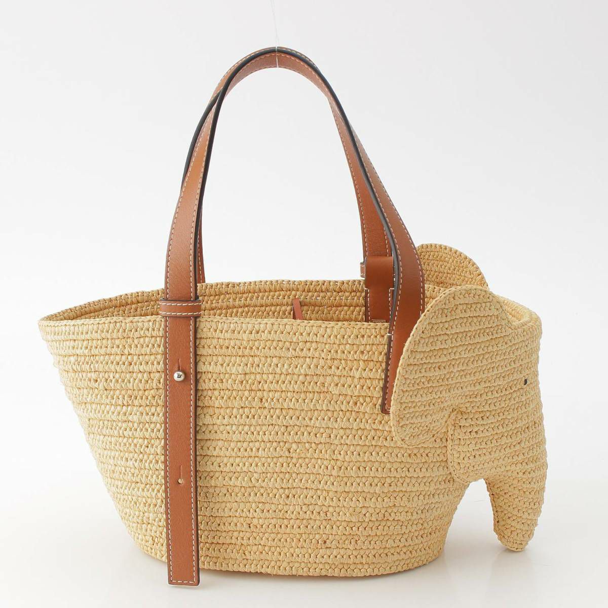 ロエベ Loewe エレファント スモール ラフィア×レザー バスケット かご トートバッグ ナチュラル