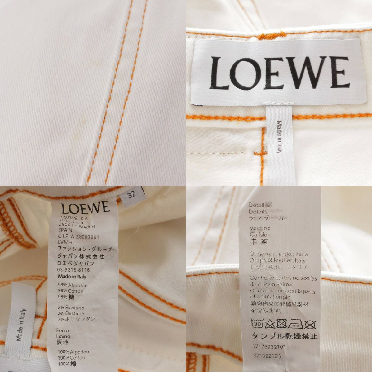 ロエベ Loewe ロゴ アナグラムボタン デニムパンツ ジーンズ ボトムス ホワイト 32