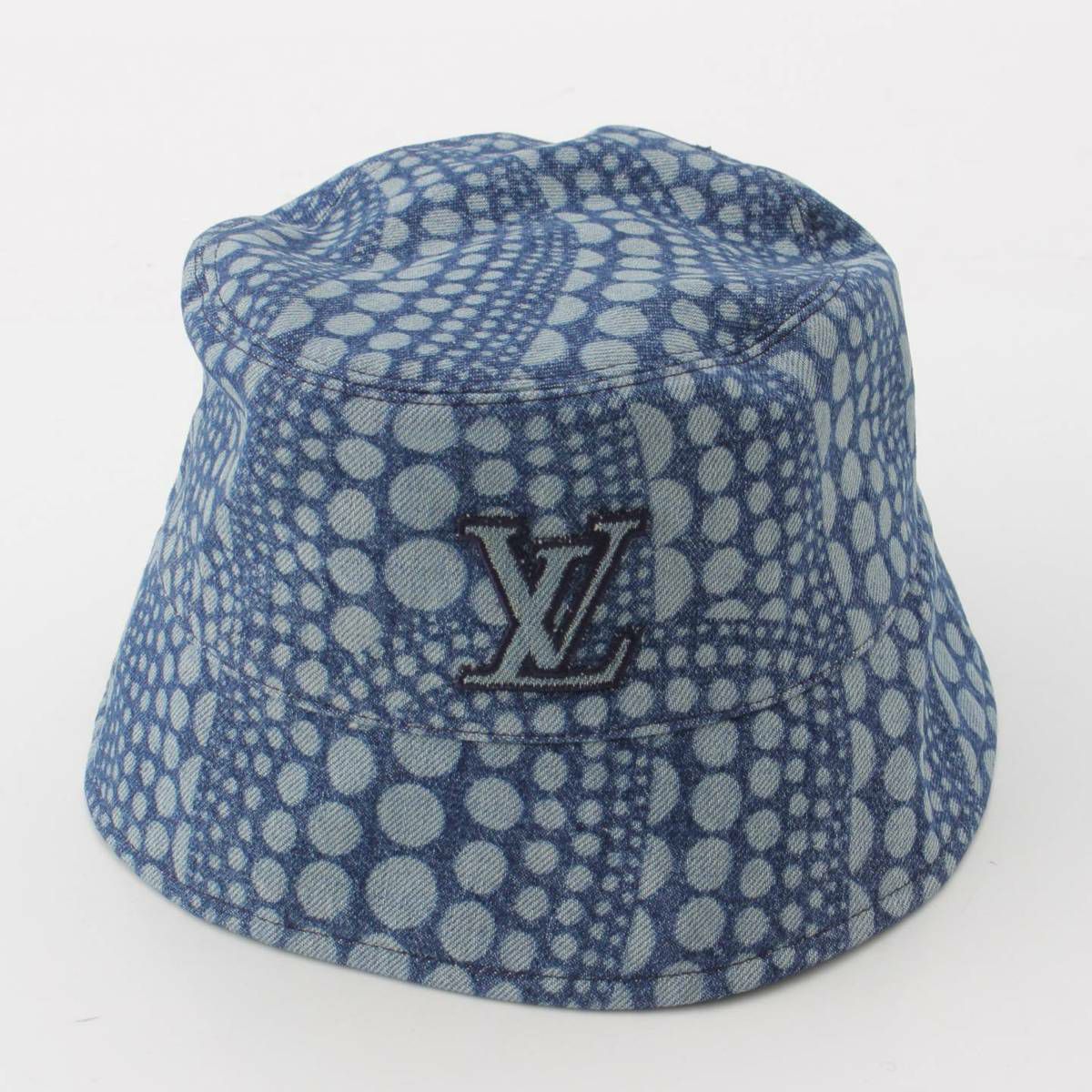 ルイヴィトン 草間彌生 yayoi kusama コットンデニム パンプキンドット リバーシブル バケット ハット 帽子 M7066L ブルー