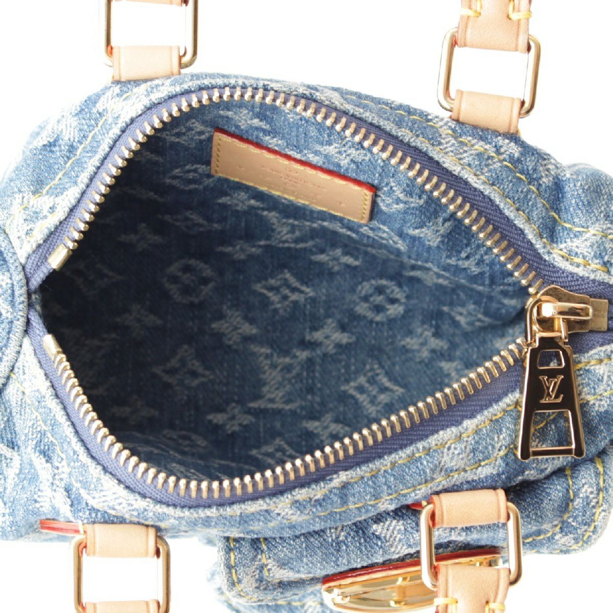 ルイヴィトン モノグラムデニム ナノスピーディ 2way ショルダー ハンドバッグ ミニボストン ポシェット M82950 ブルー