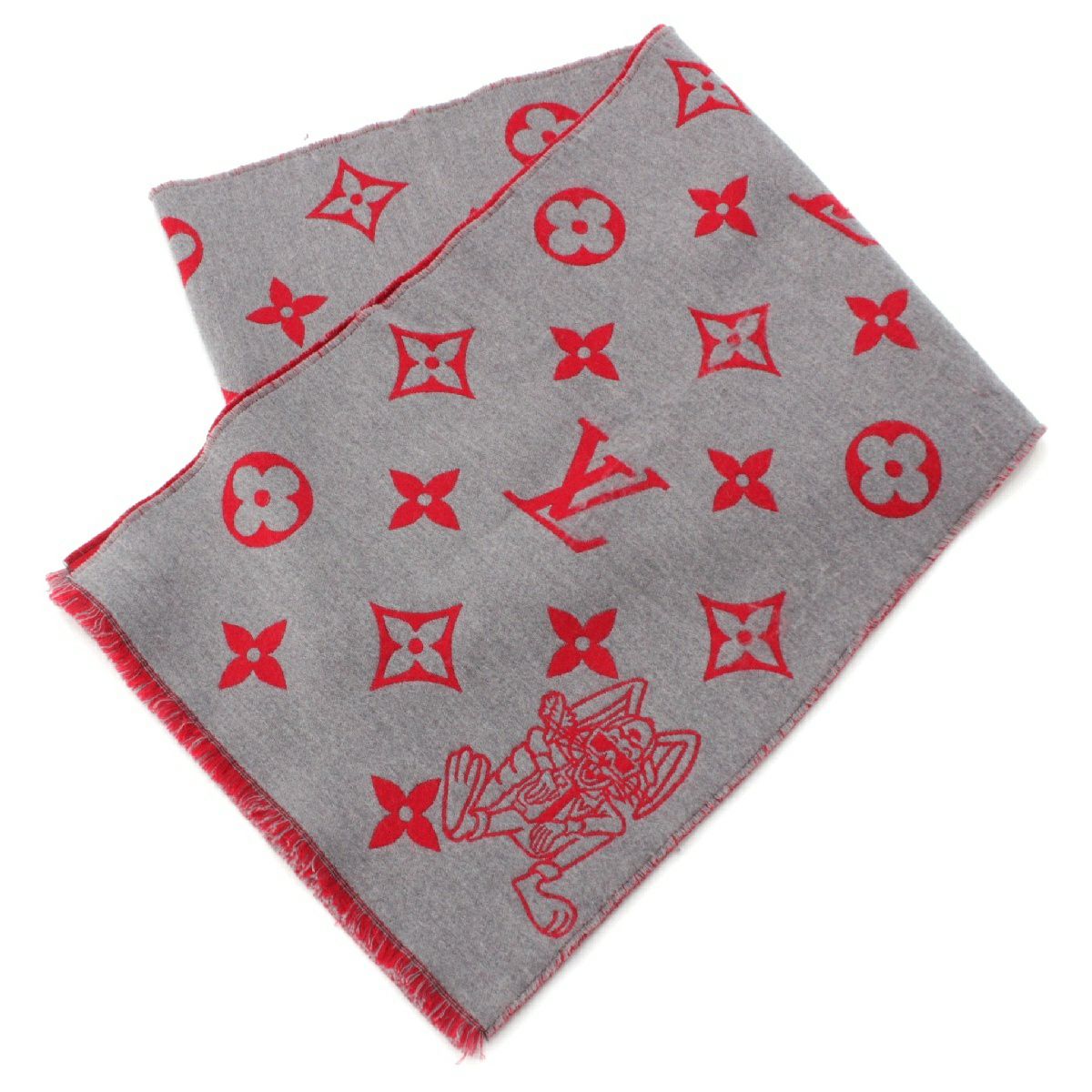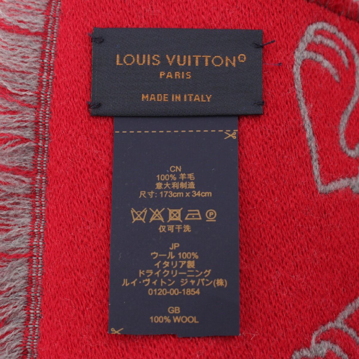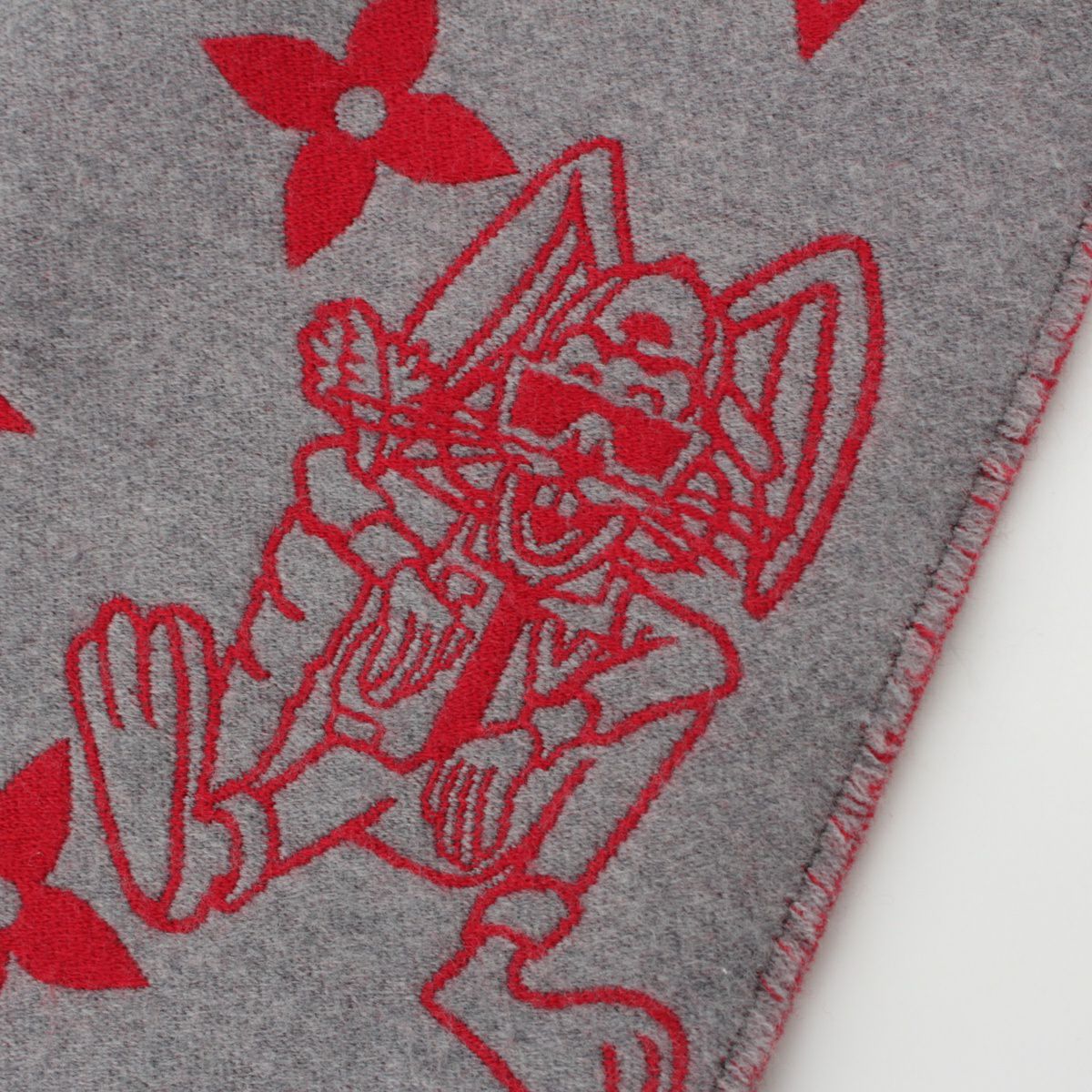 ルイヴィトン 23年 モノグラム ウール LVラビット エシャルプ フリンジ マフラー ストール レッド グレー