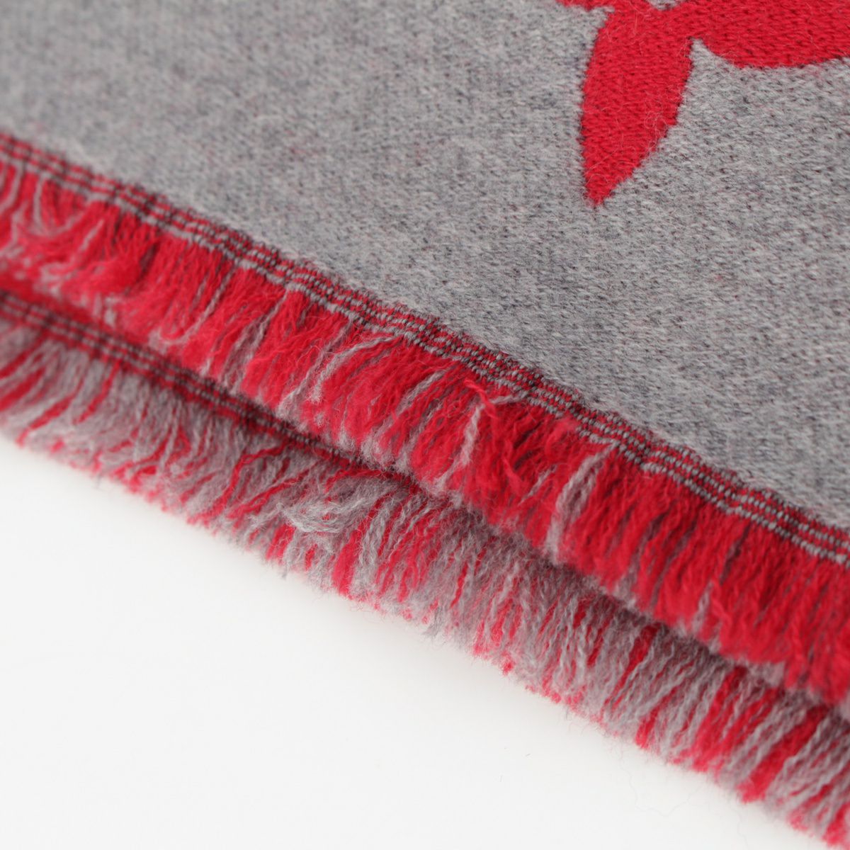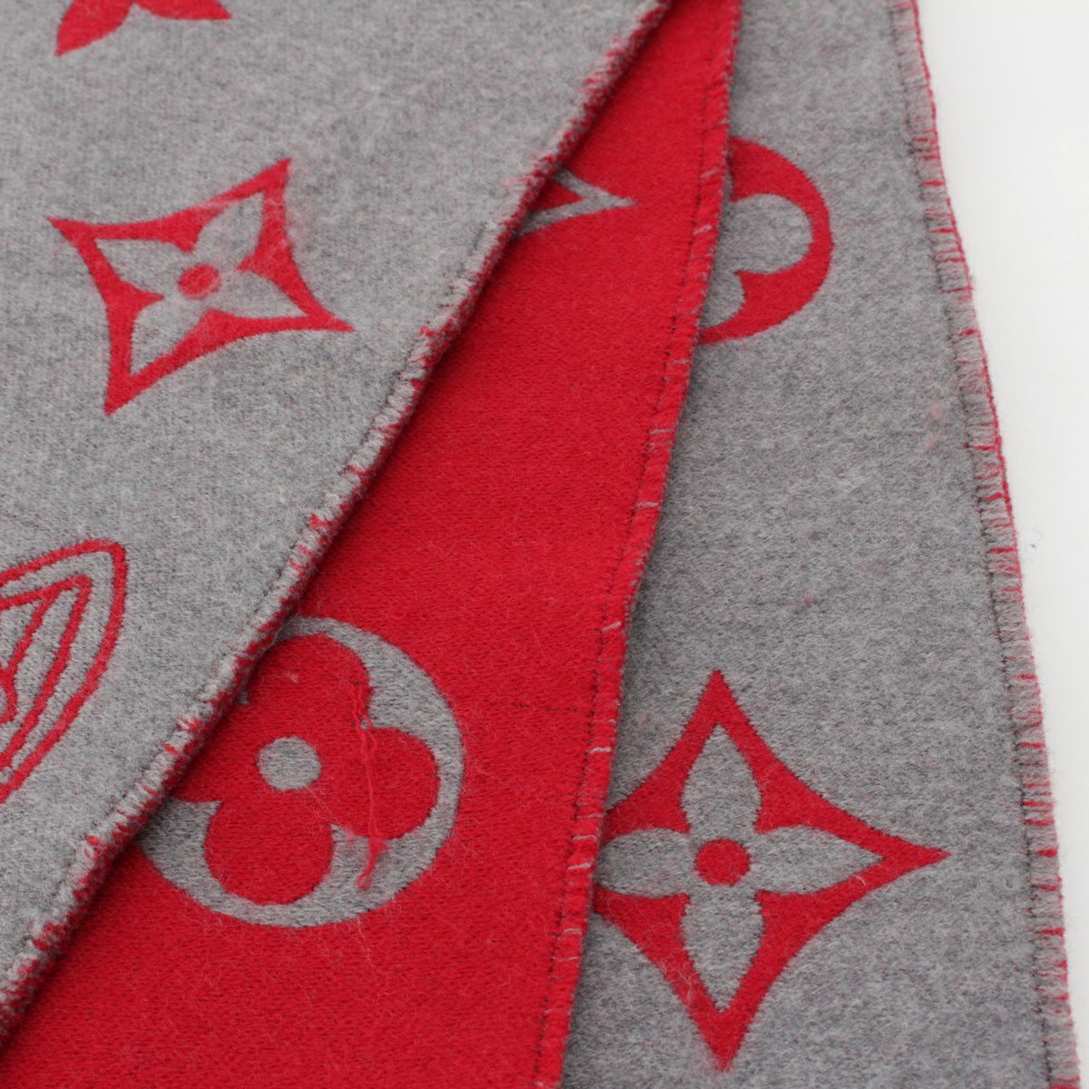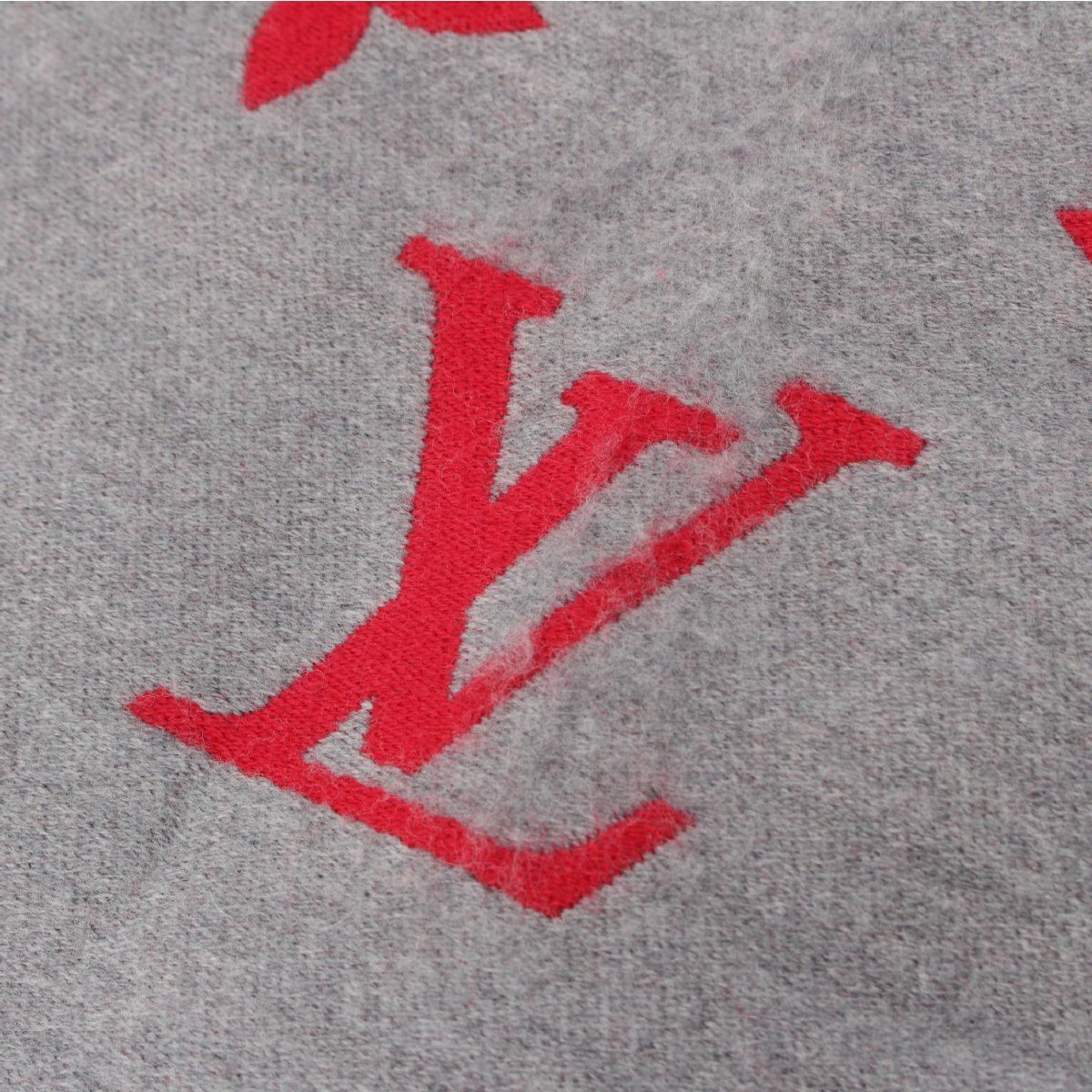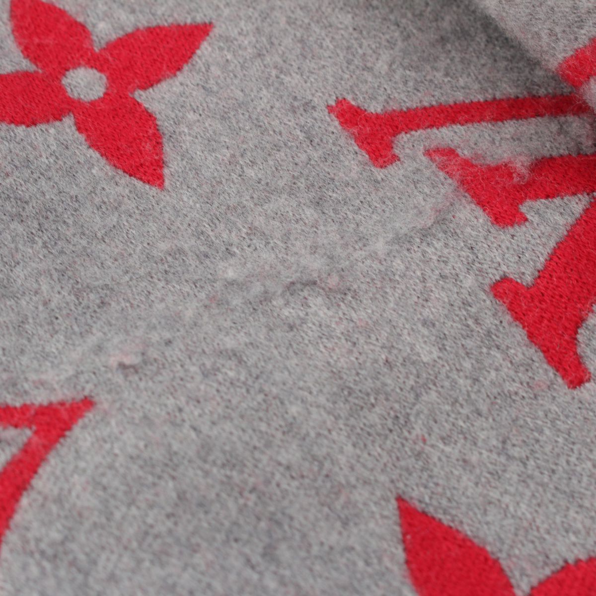 ルイヴィトン 23年 モノグラム ウール LVラビット エシャルプ フリンジ マフラー ストール レッド グレー