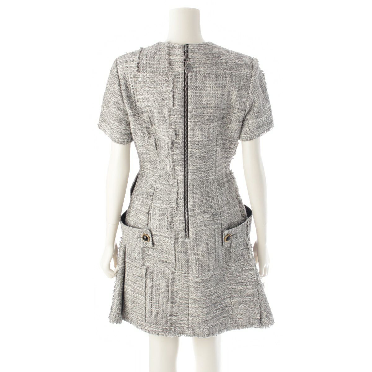 ルイヴィトン 22SS コットン ツイード ショートスリーブ フレア ワンピース スケータードレス RM221B MR2 FMR077 グレー 38