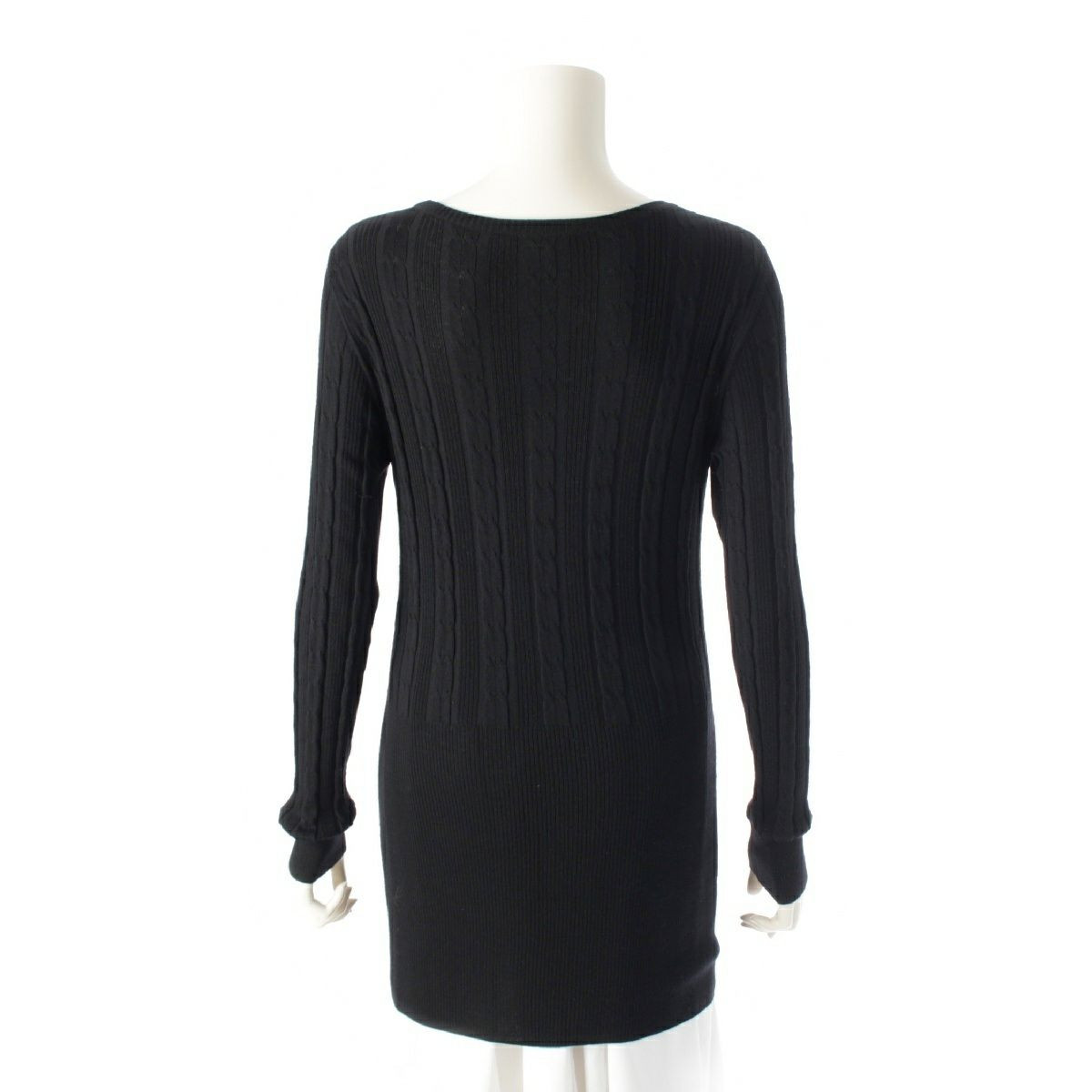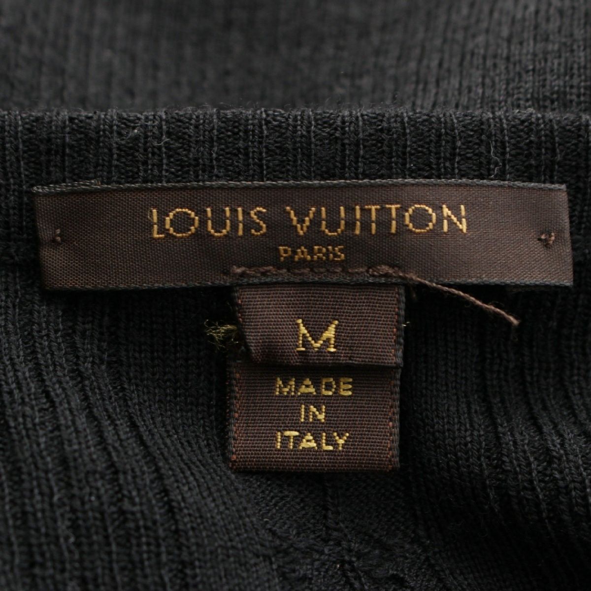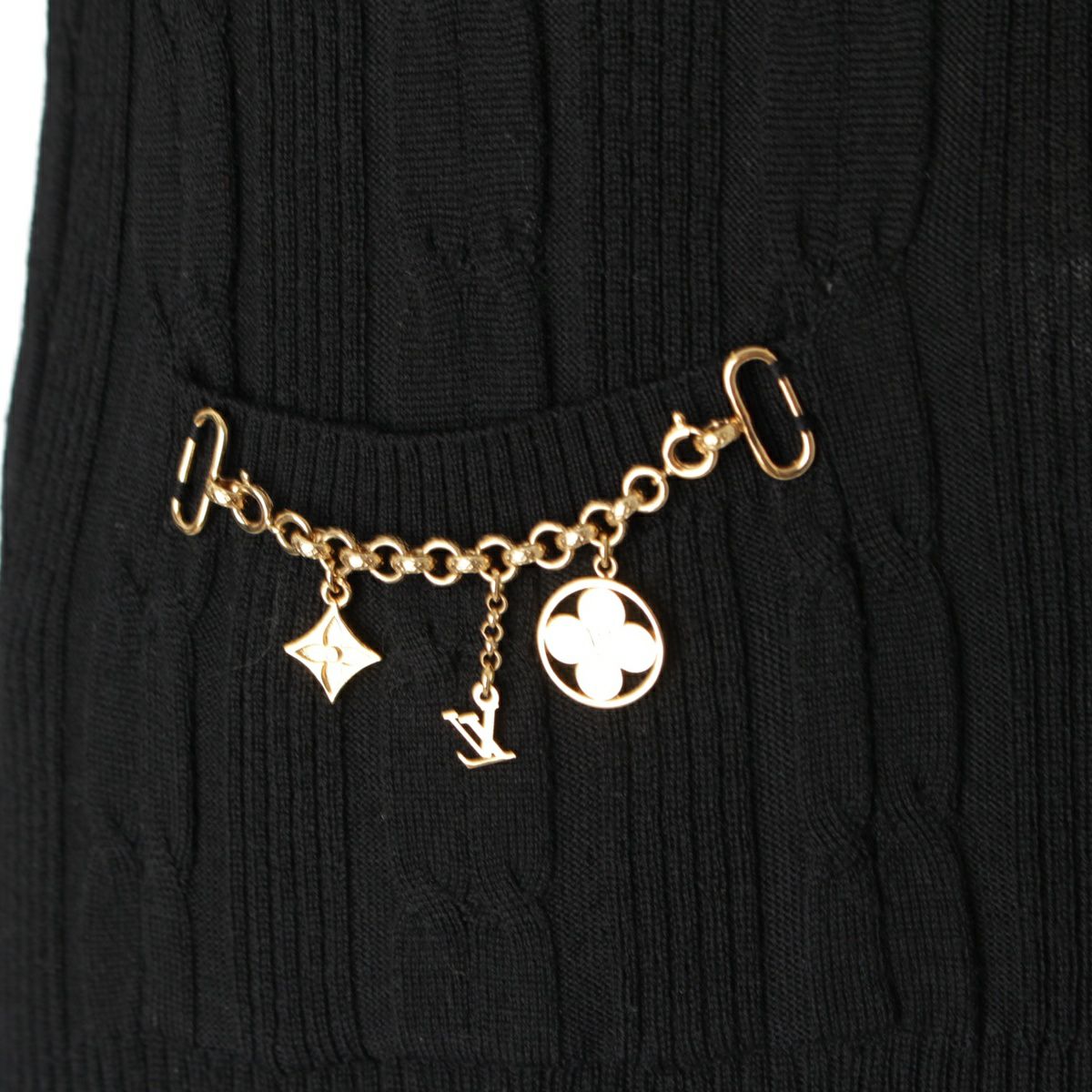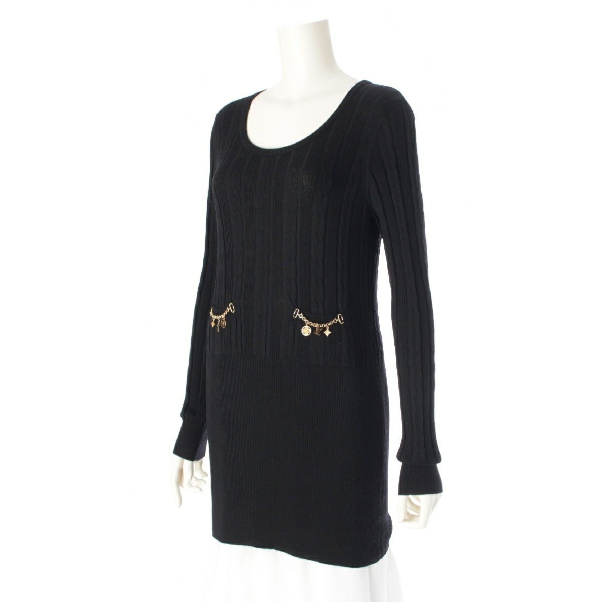 ルイヴィトン ウール LV モノグラム ロゴチャーム ケーブル編み リブニット ワンピース トップス セーター RW092W WRKL30MSB ブラック M