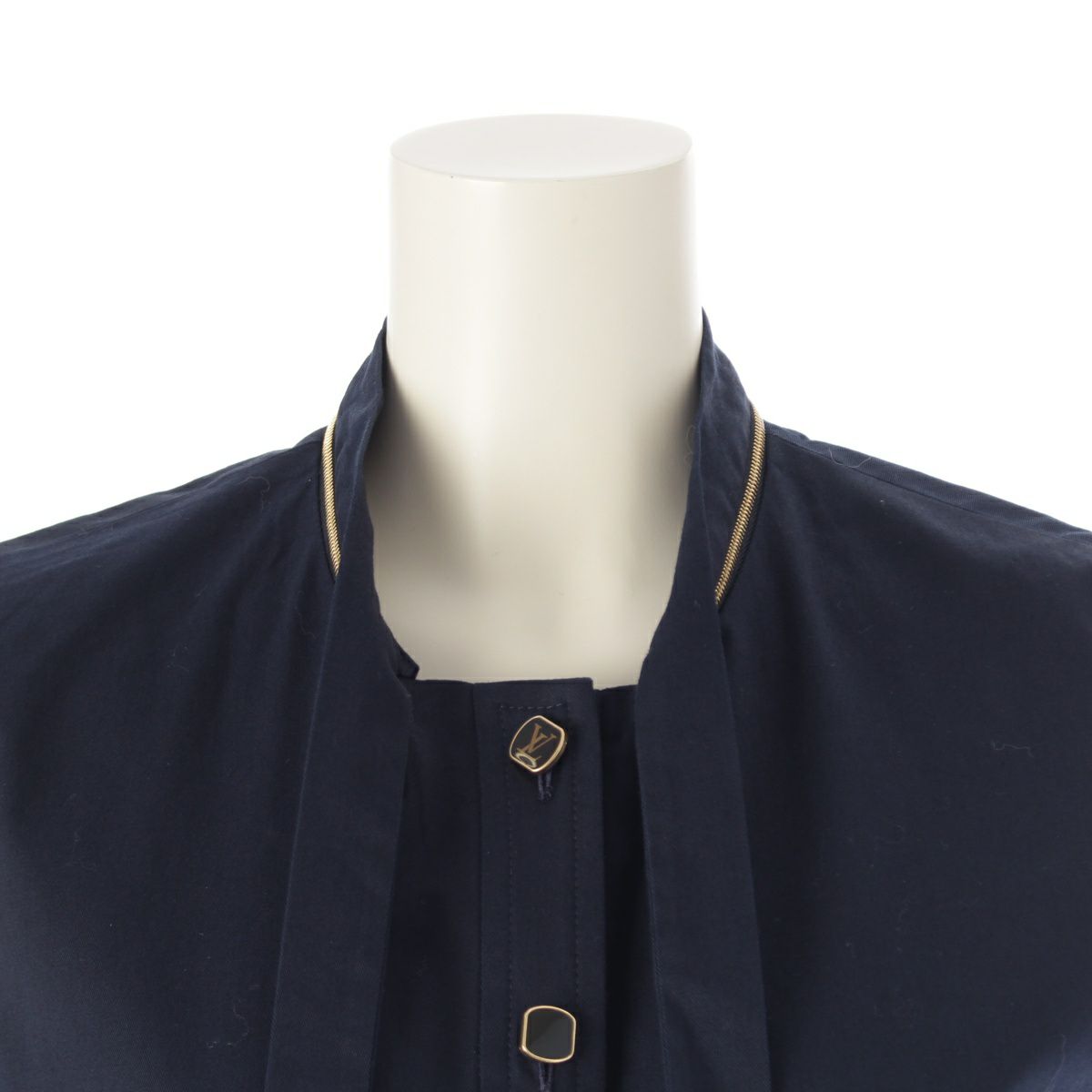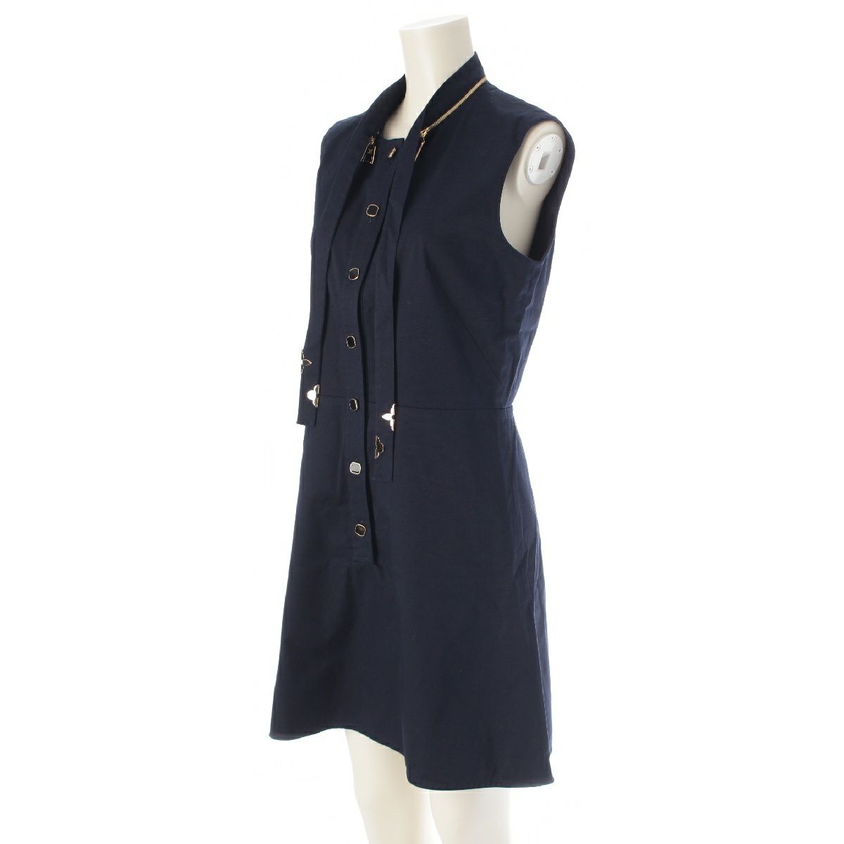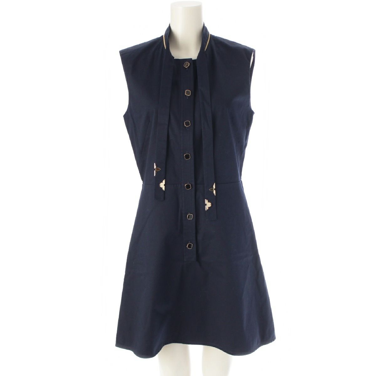 ルイヴィトン 20SS デタッチャブルカラー ボウタイ モノグラム ノースリーブ ワンピース RW201B ネイビー 38