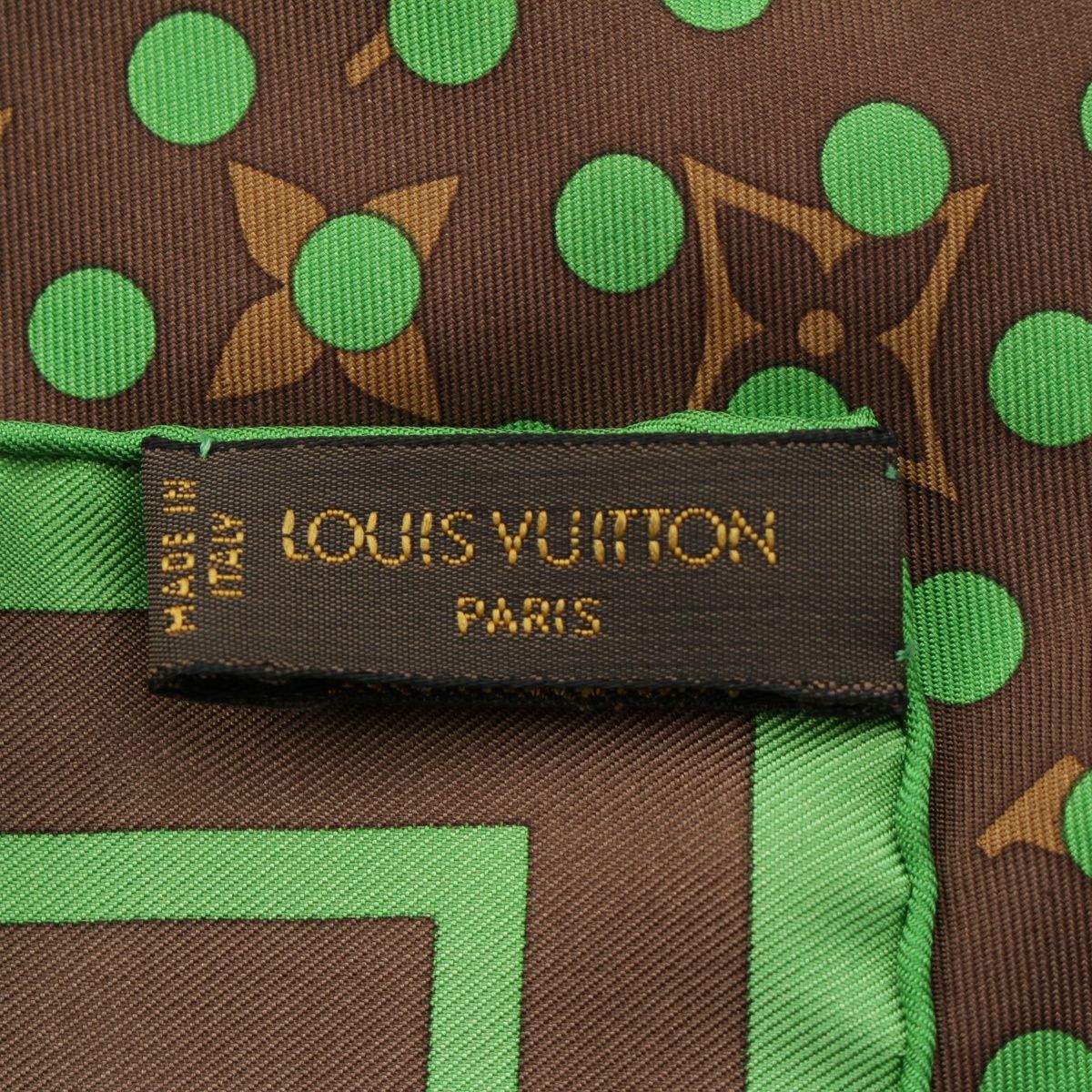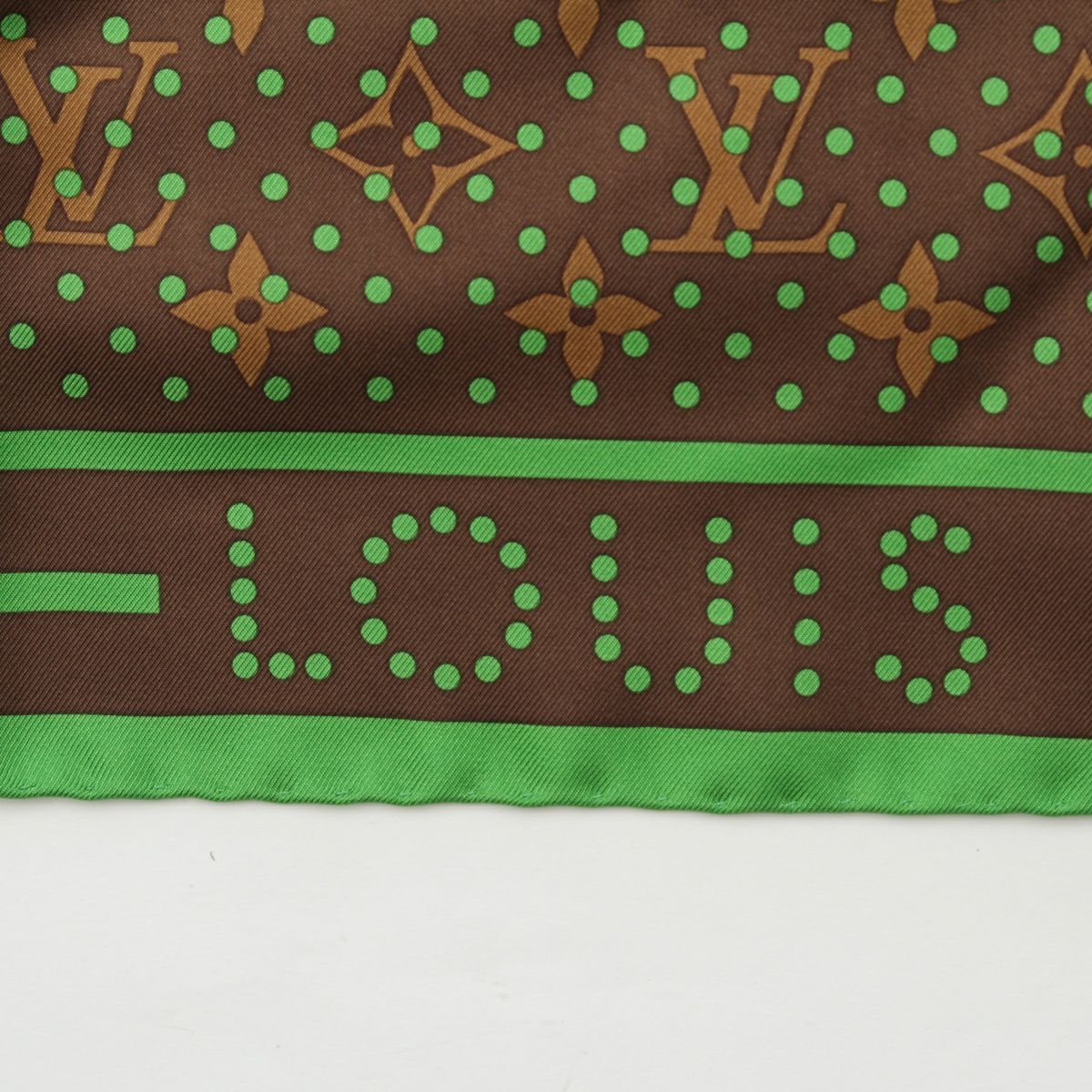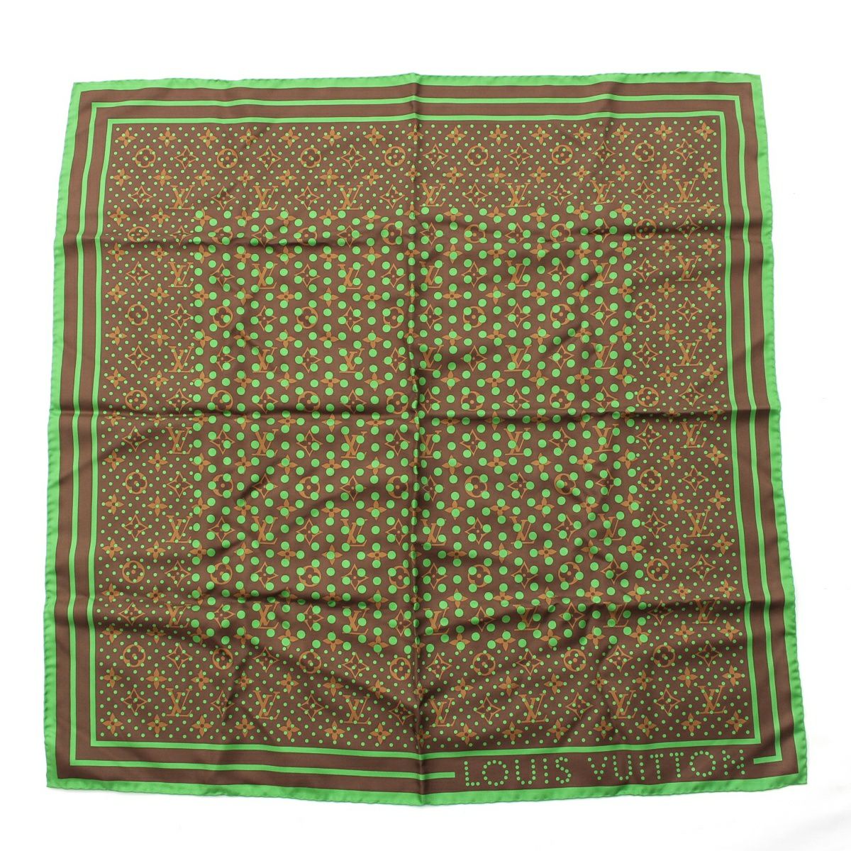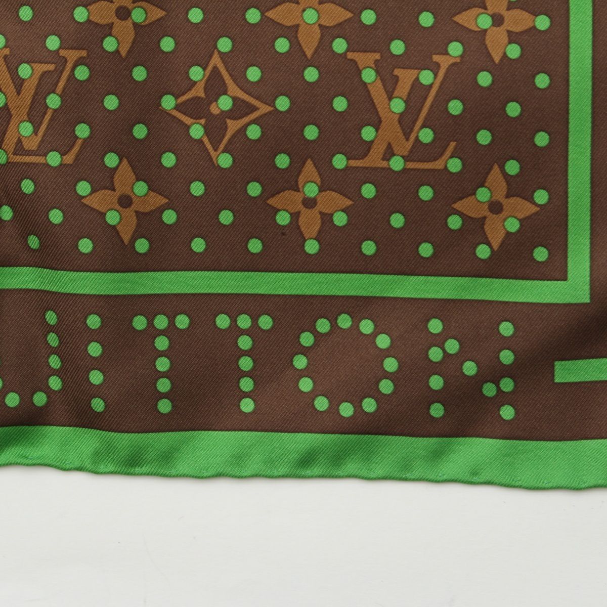 ルイヴィトン モノグラム ペルフォ シルク LVロゴ ドット柄 スカーフ ブラウン グリーン