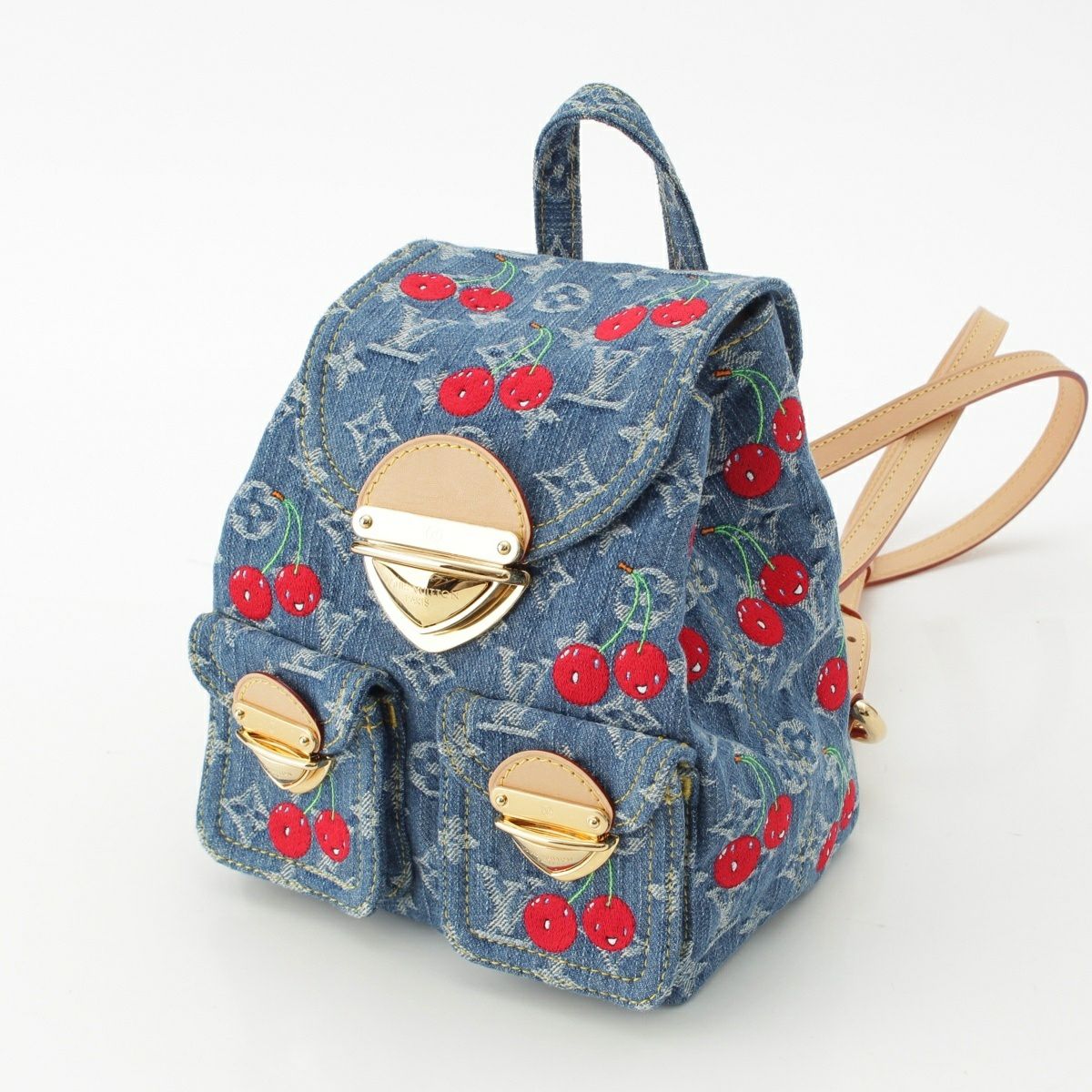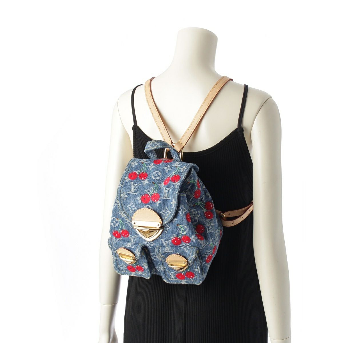 ルイヴィトン LV × TM デニム ヴェニス モノグラム チェリー ミニ リュック デイパック M13679 ブルー