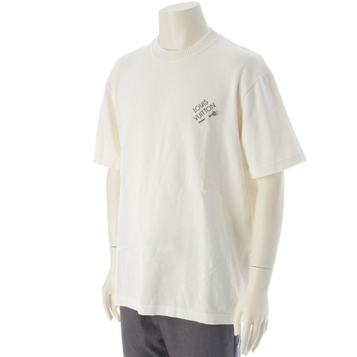 ルイヴィトン 24SS コットン エンブロイダリー シグネチャー 半袖 セーター ニット トップス ホワイト L