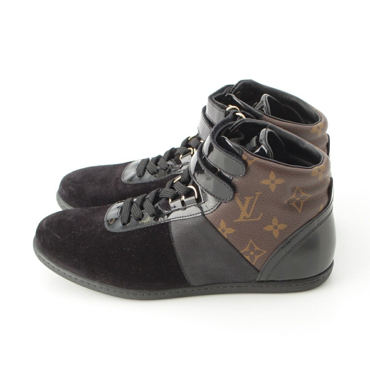 ルイヴィトン 14年 スエード パテント モノグラム ハイカット スニーカー シューズ GO0194 ブラック 36