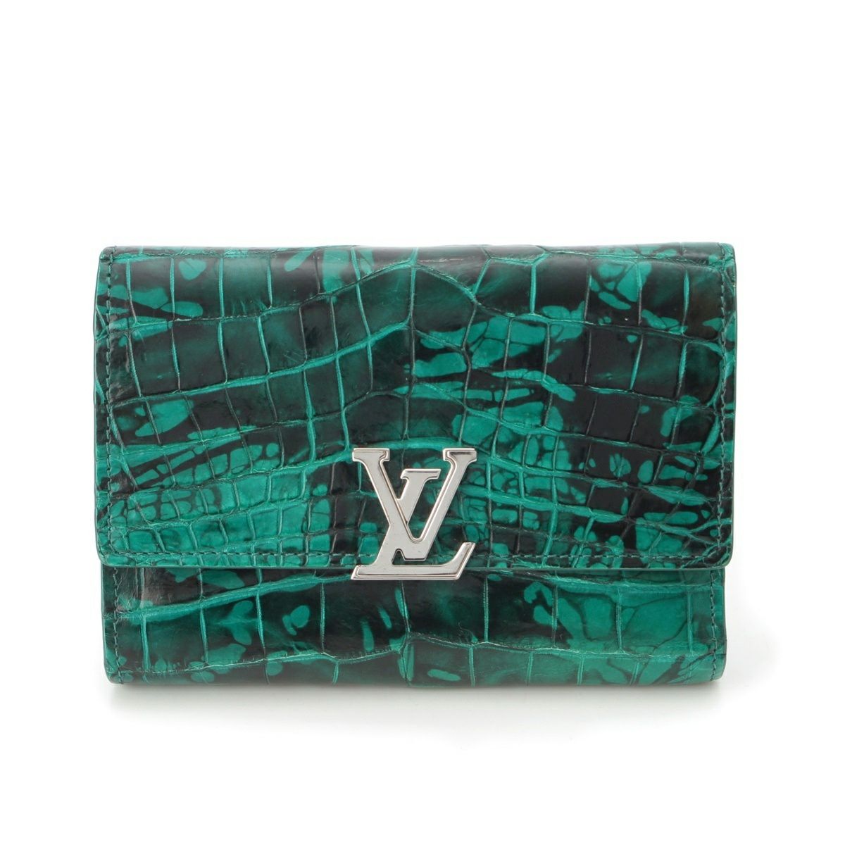 ルイヴィトン カプシーヌ クロコダイル コンパクトウォレット 三つ折り財布 ロゴ グリーン