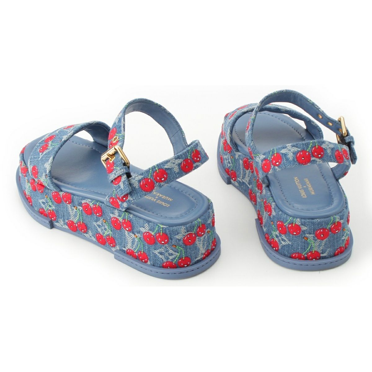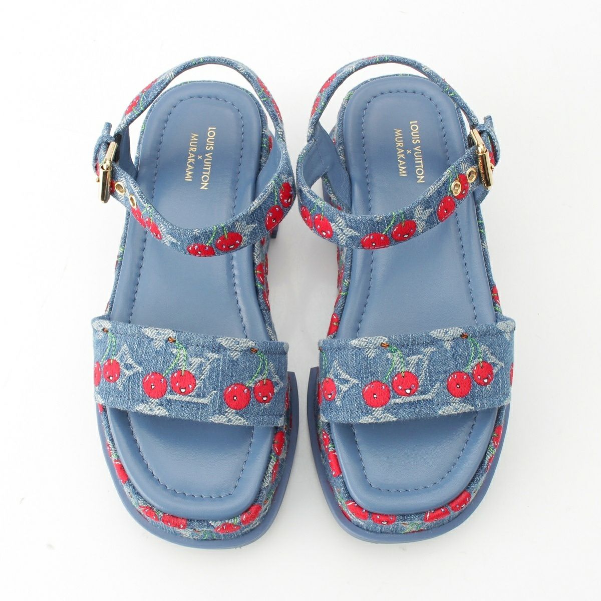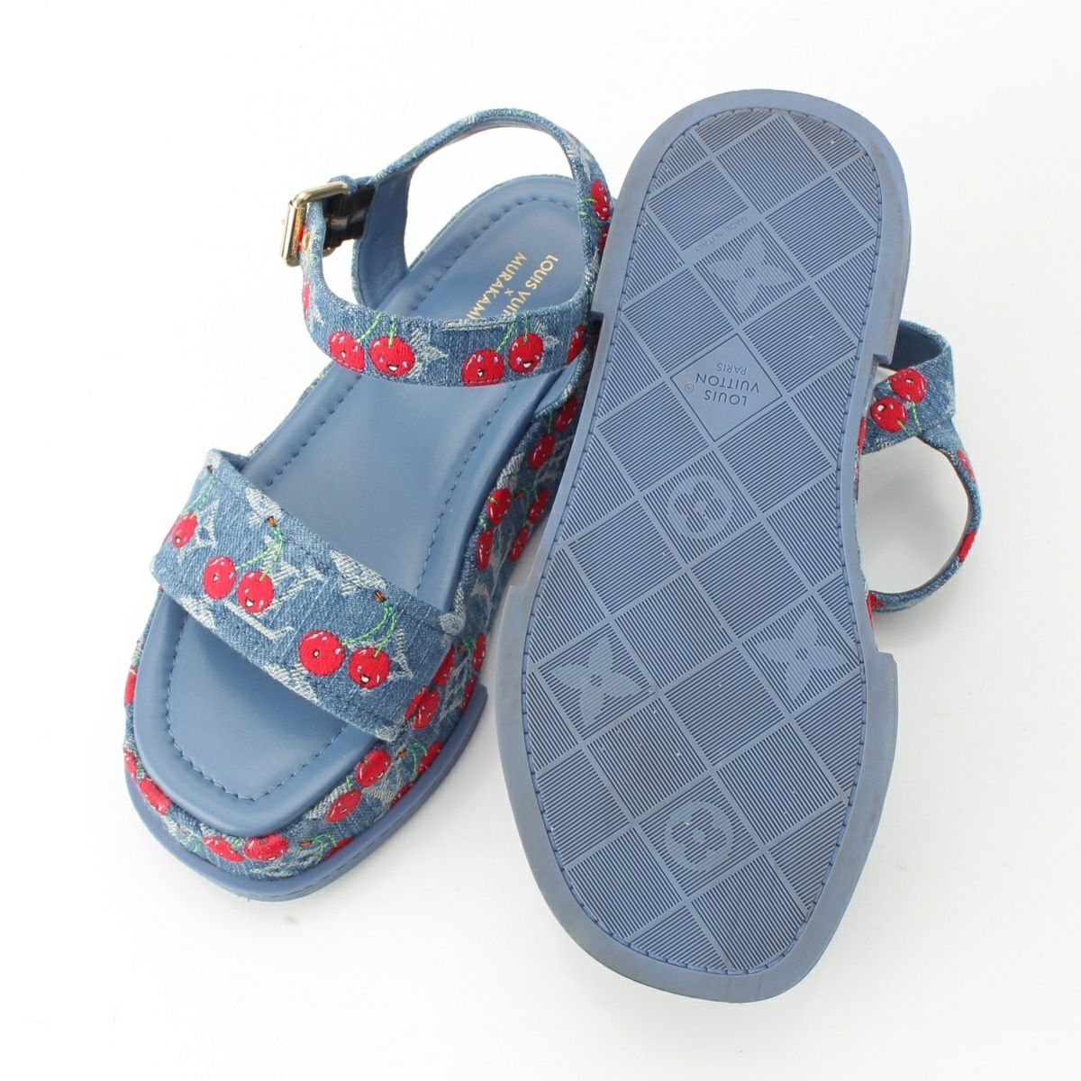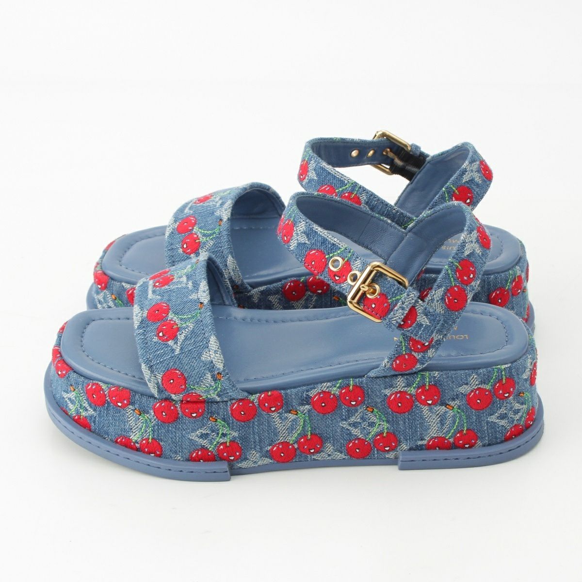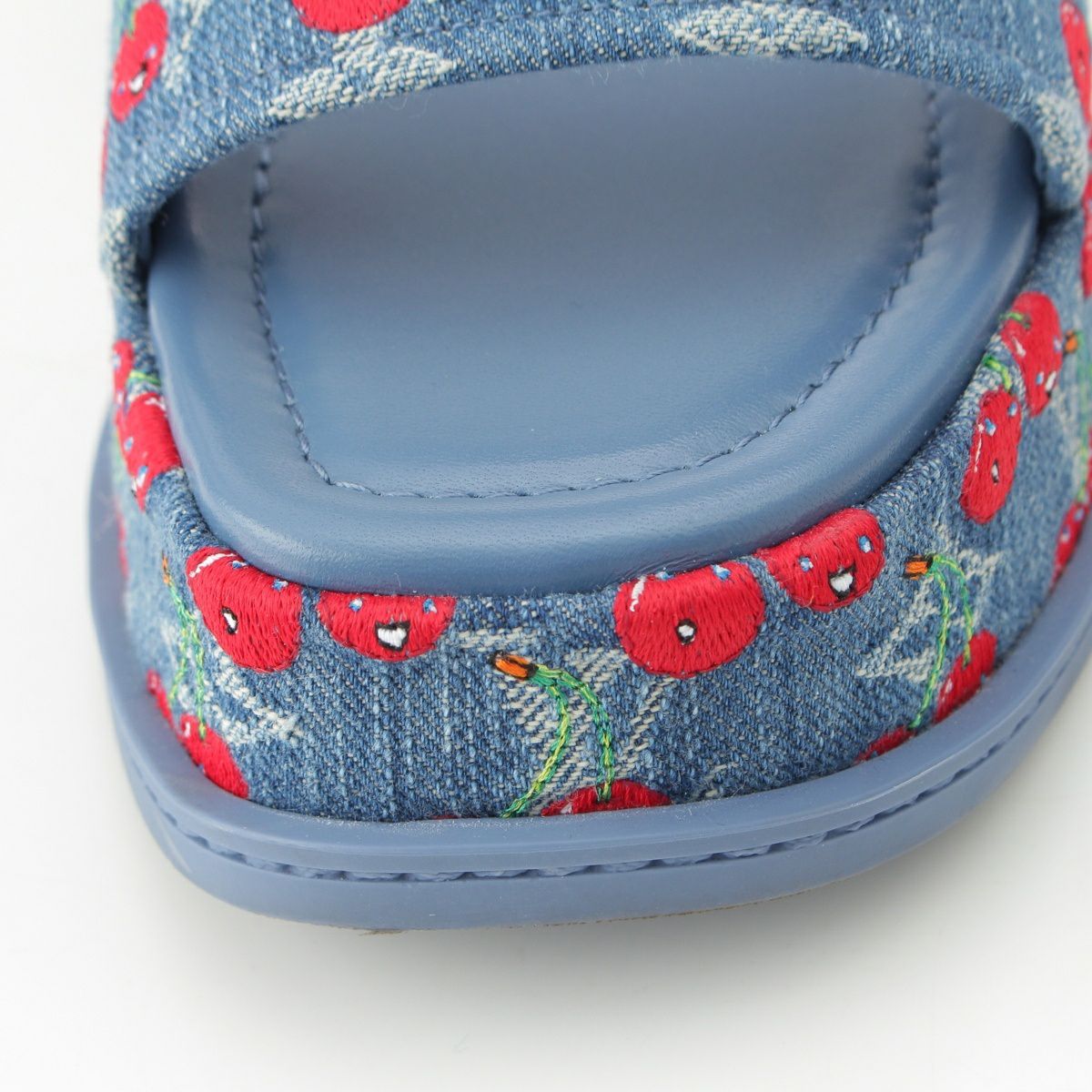 ルイヴィトン デニム 村上隆 チェリー マヤ プラットフォーム サンダル ブルー