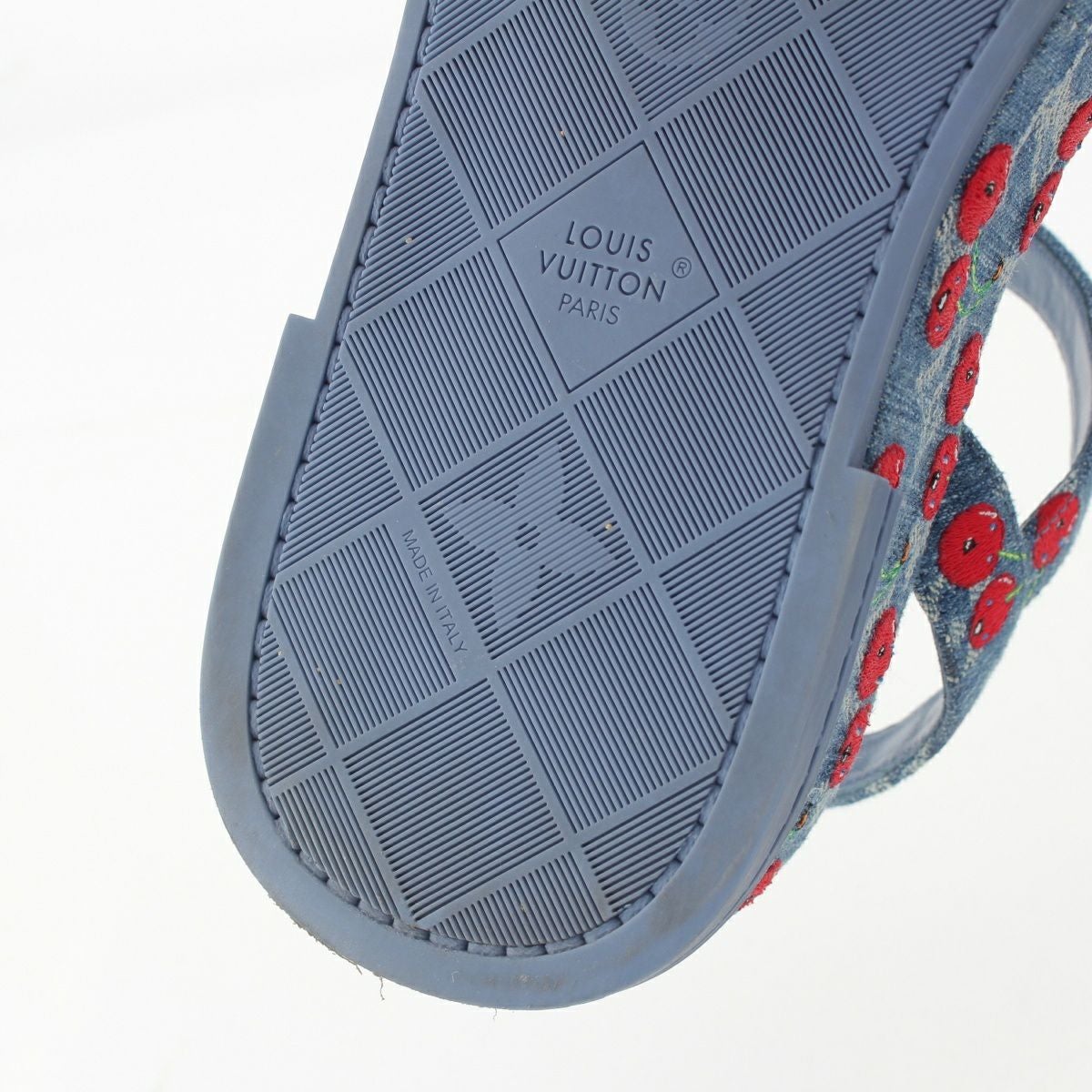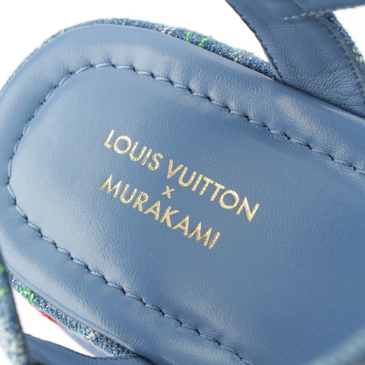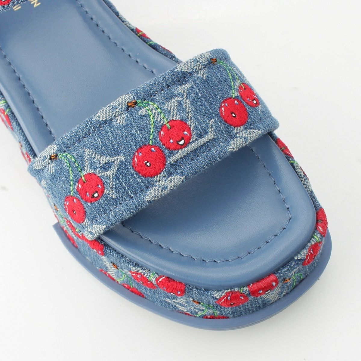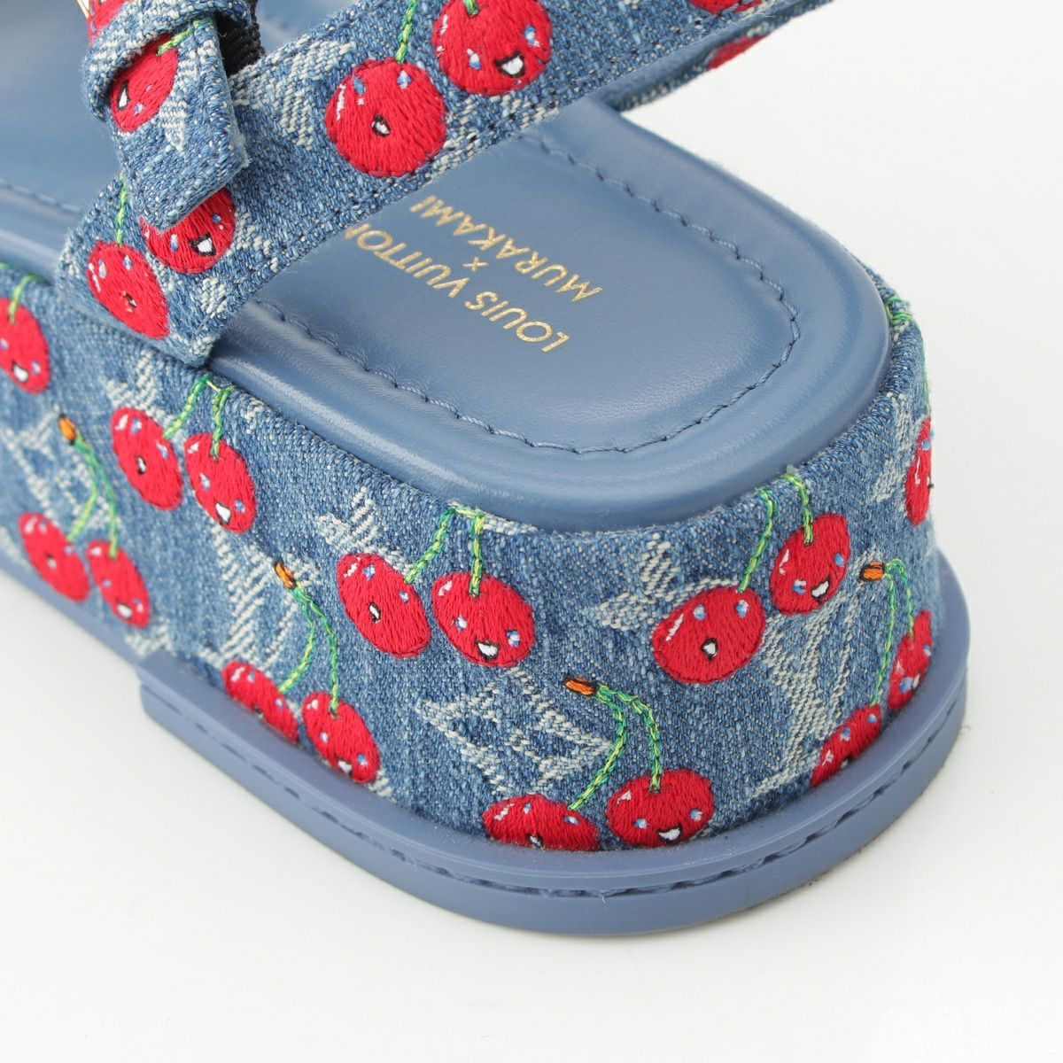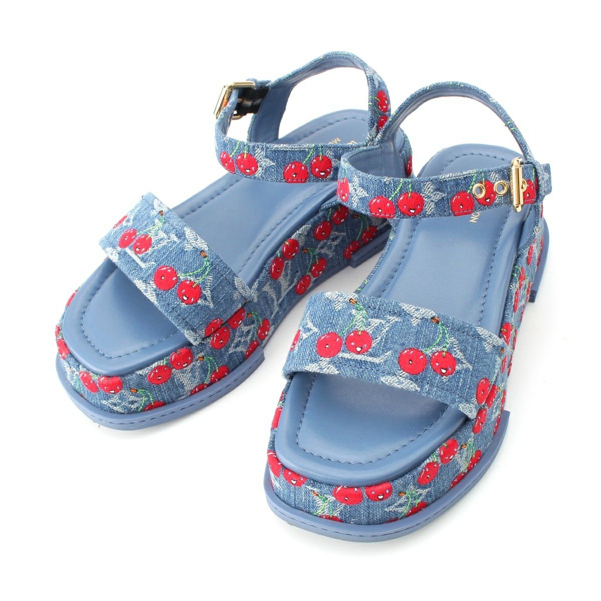 ルイヴィトン デニム 村上隆 チェリー マヤ プラットフォーム サンダル ブルー