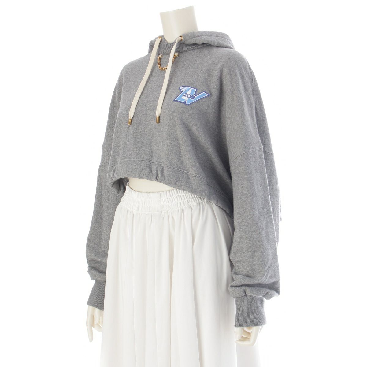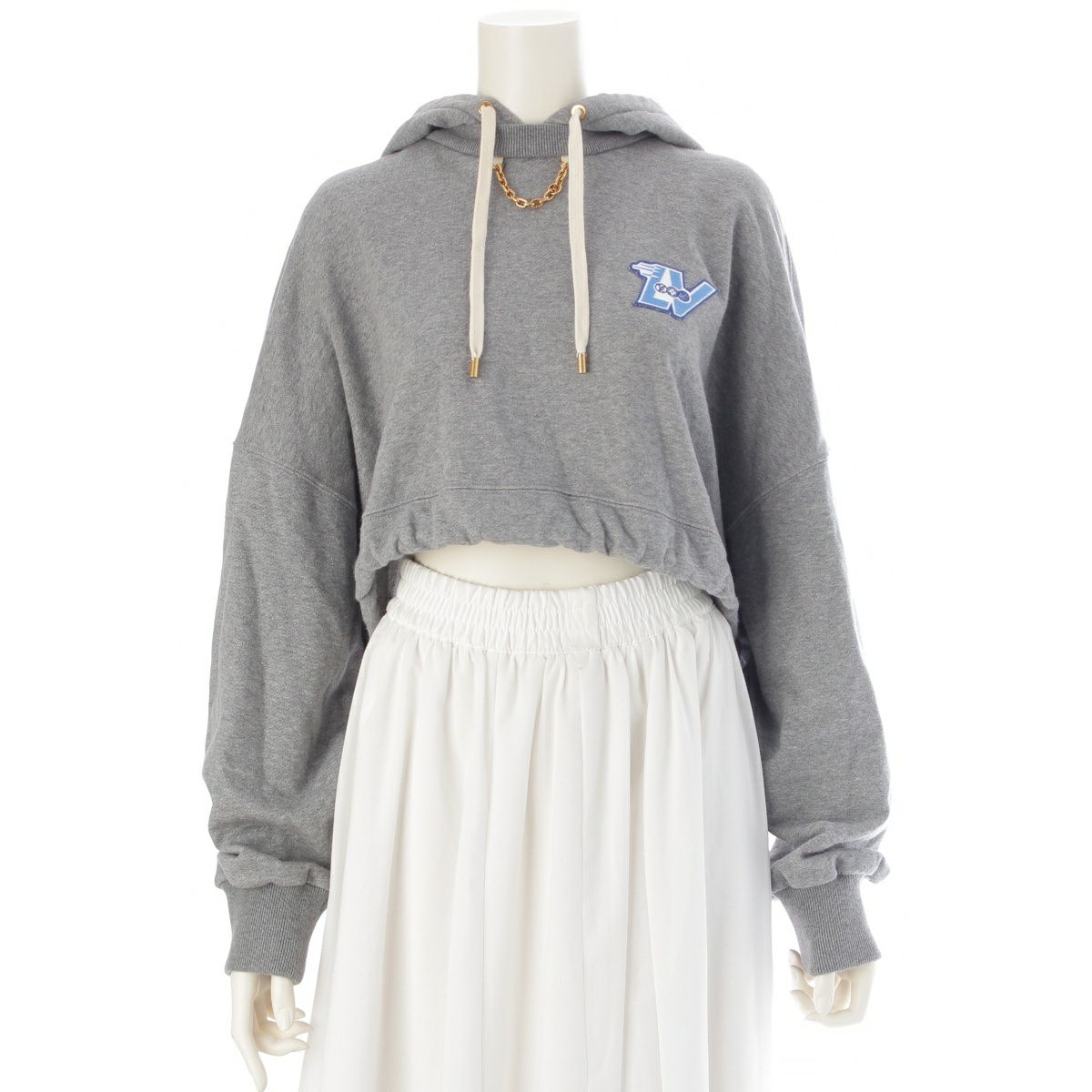 ルイヴィトン 2023 LVフライト パッチ チェーン クロップド フーデッド パーカー グレー M