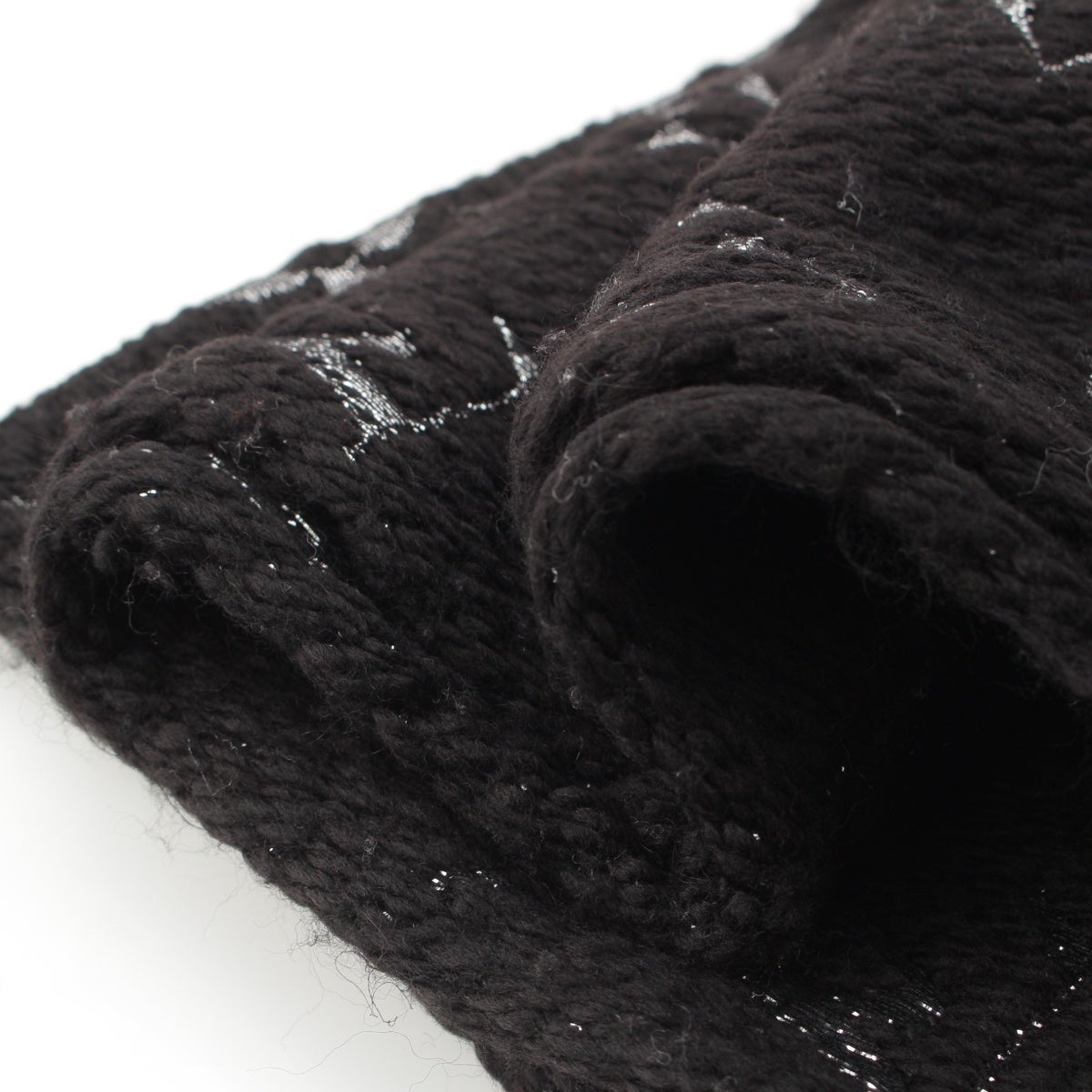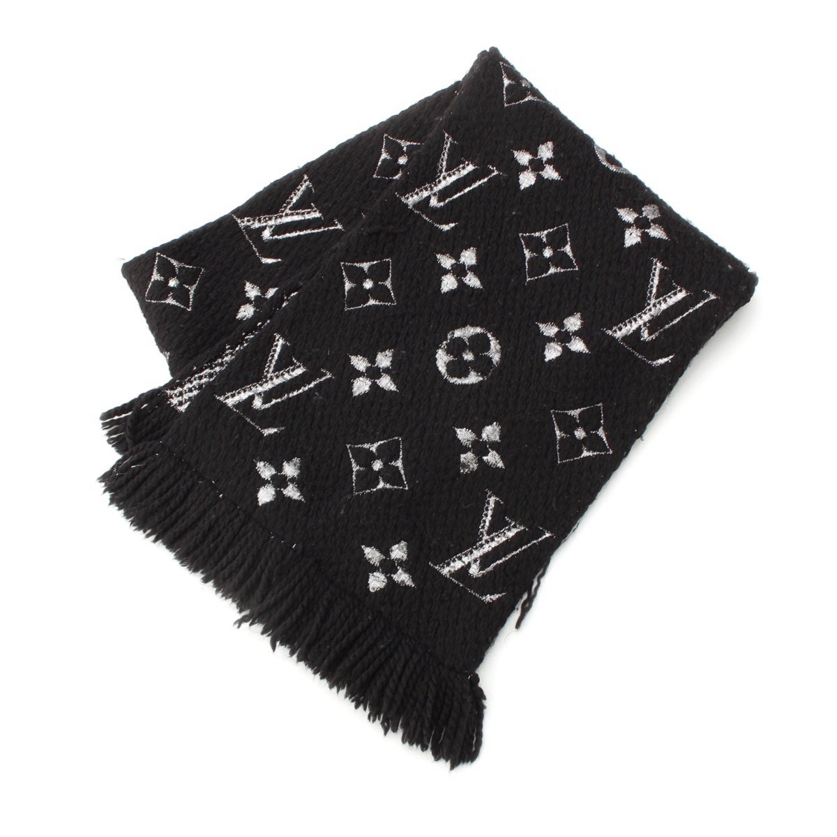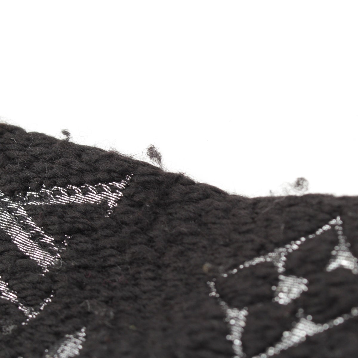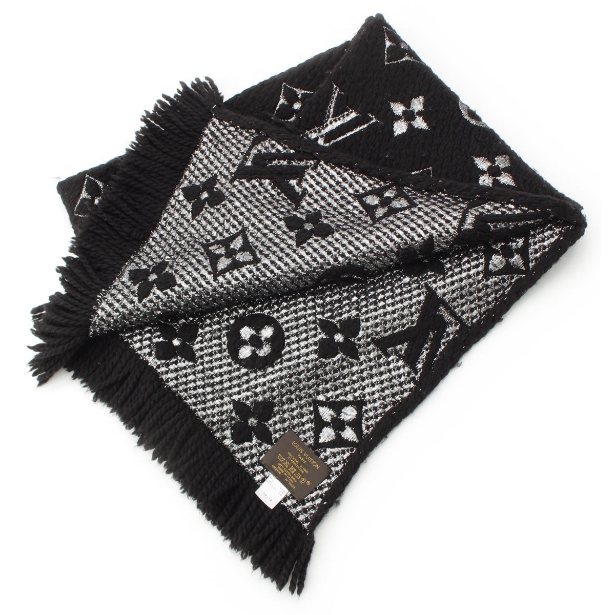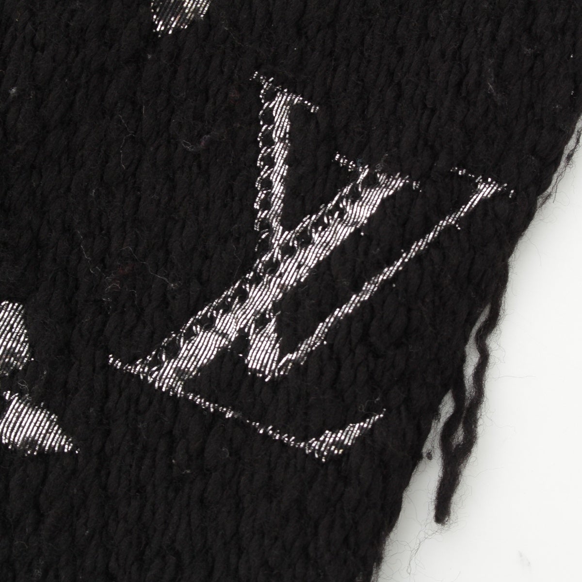 ルイヴィトン ウール シルク エシャルプ ロゴマニア シャイン マフラー M75833 ブラック シルバー