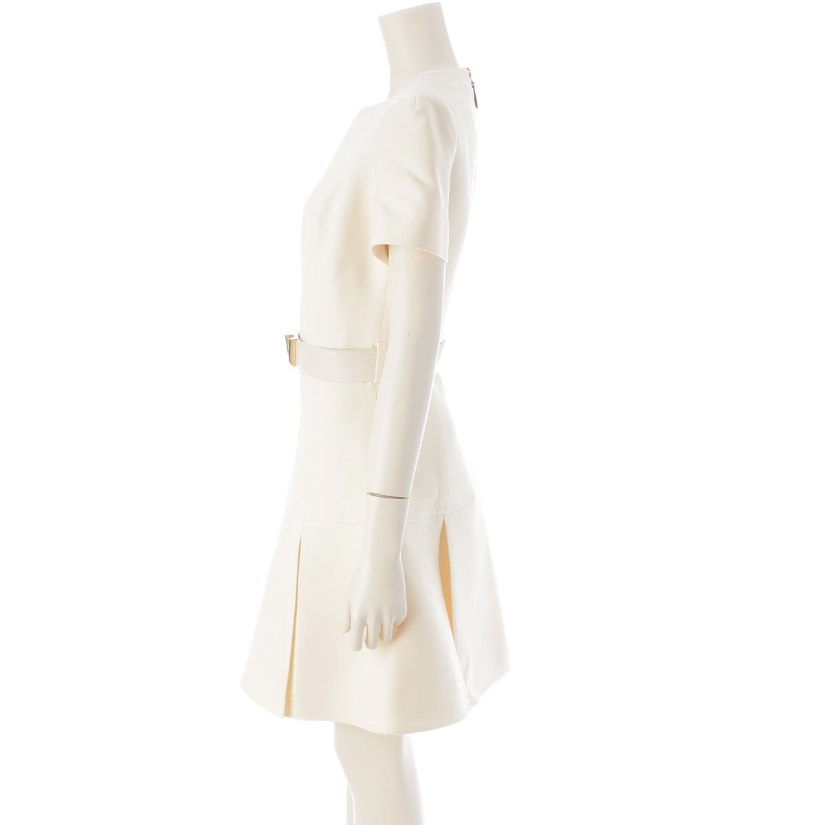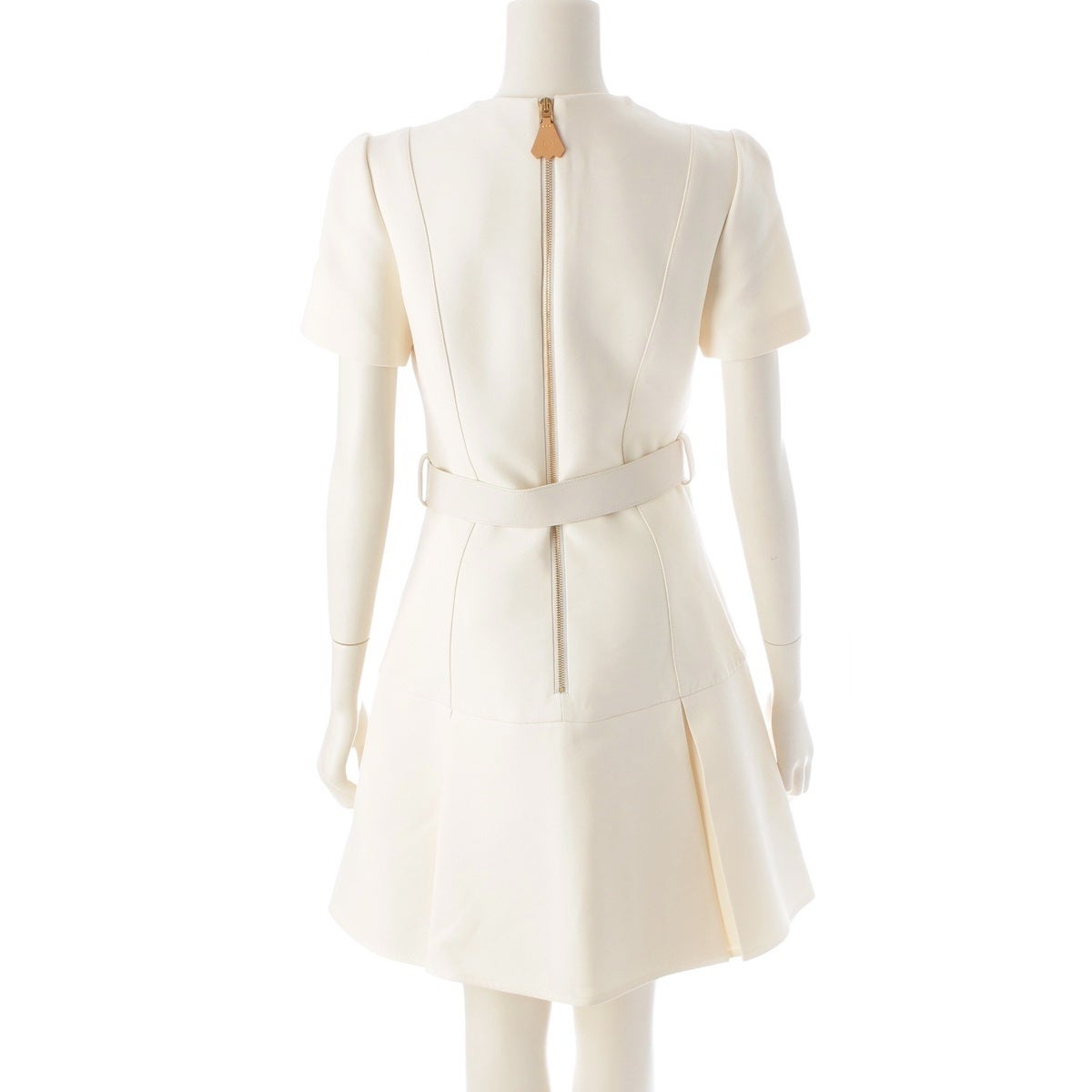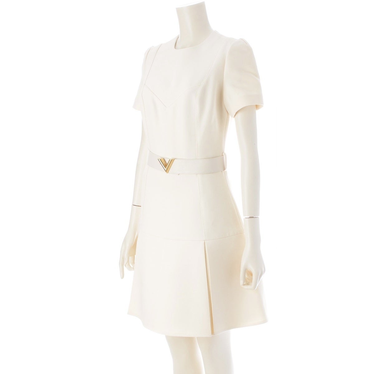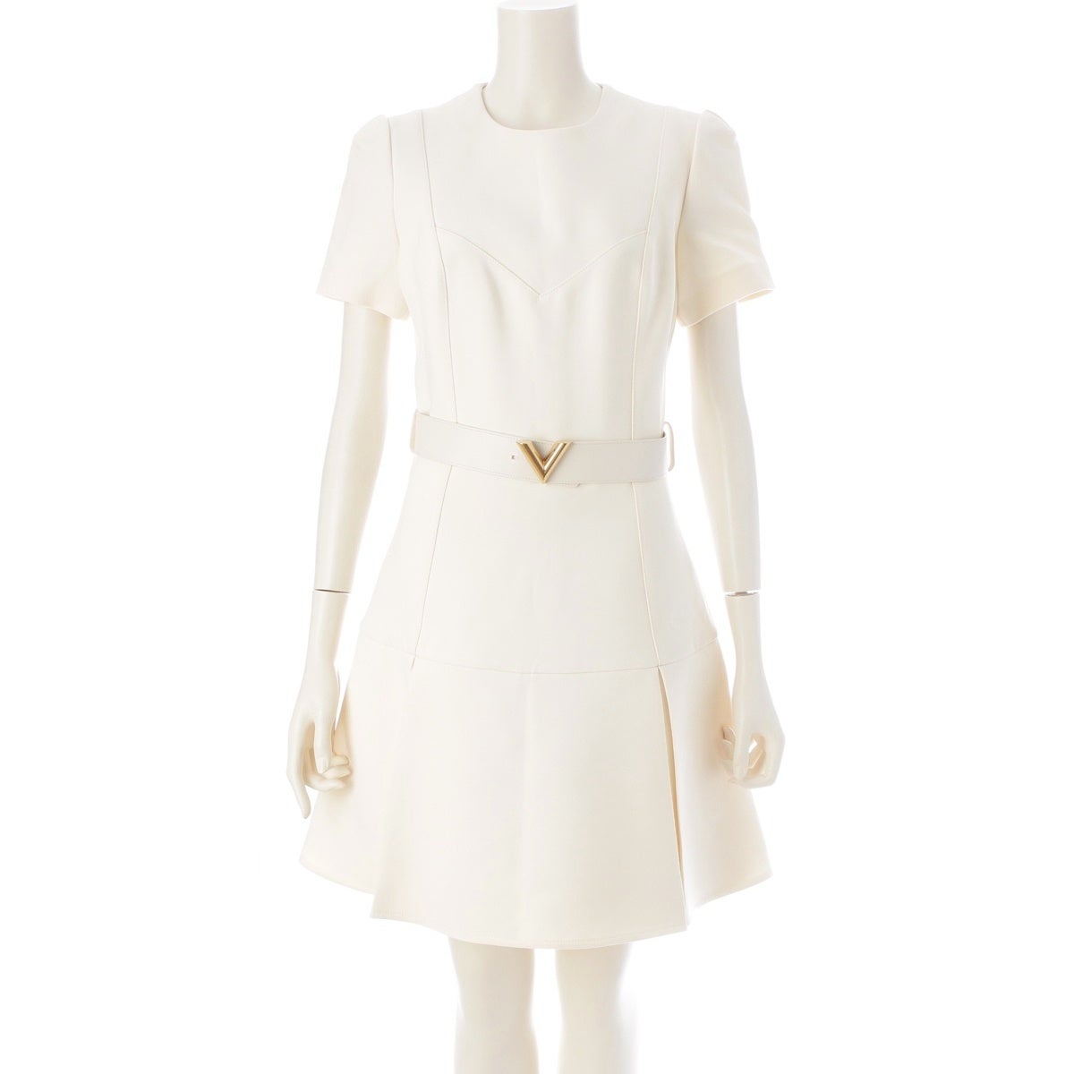 ルイヴィトン 2024 ウール×シルク Vベルト付き 半袖 ワンピース アイボリー 34