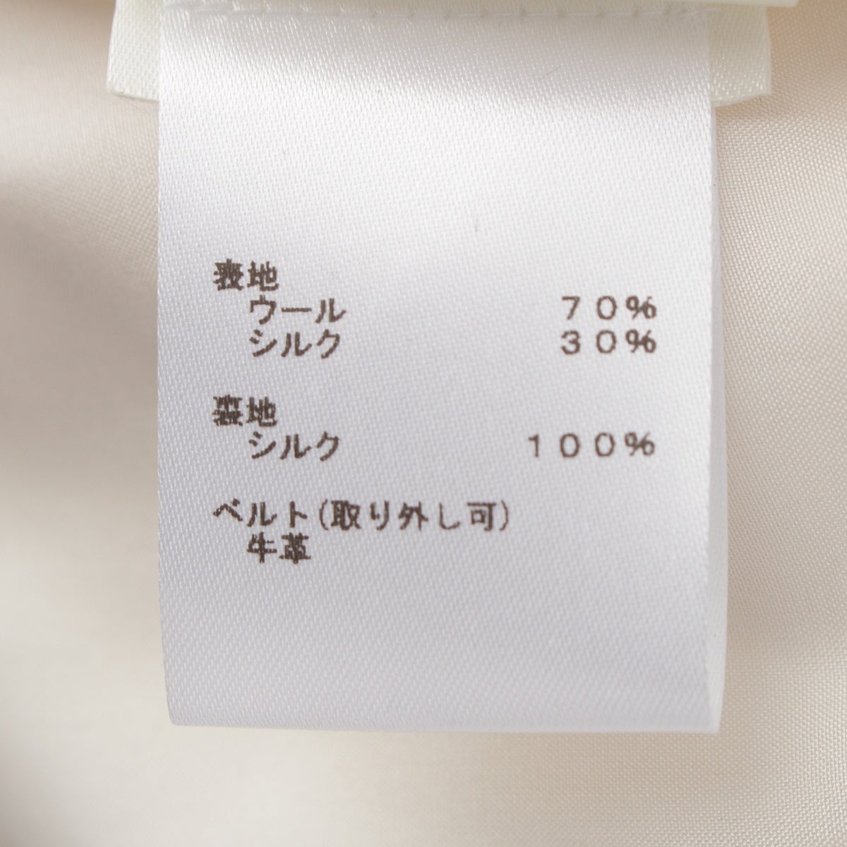 ダメージ箇所: 前身頃首元:汚れあり 後身頃裾元中央裏地:変色あり ベルト金具:スレ・変色あり、