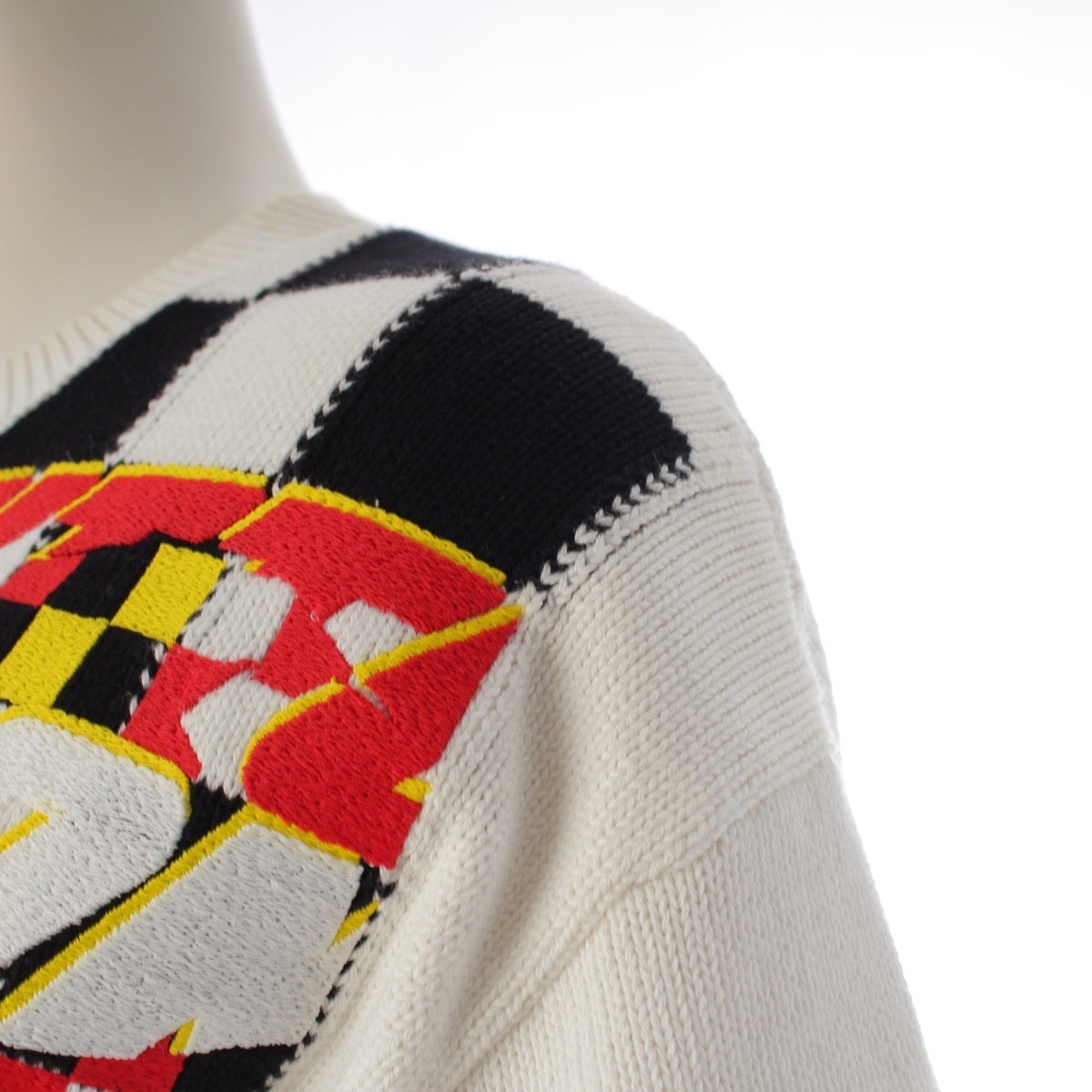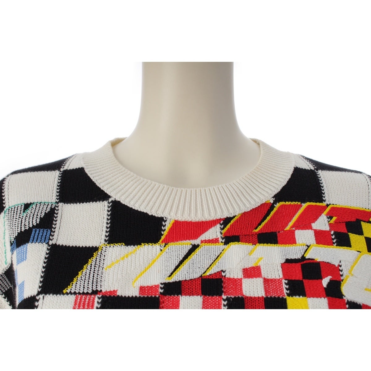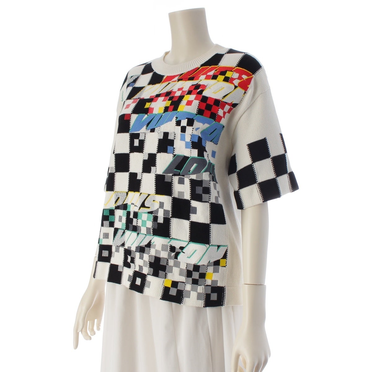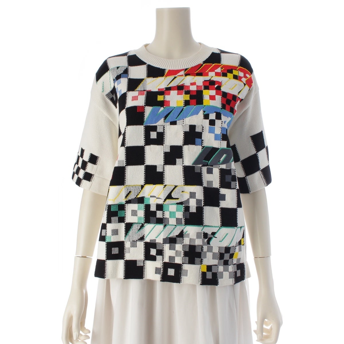 ルイヴィトン コットン チェック 半袖 ニット RW222W PU1 FNKS18 ホワイト系マルチカラー S
