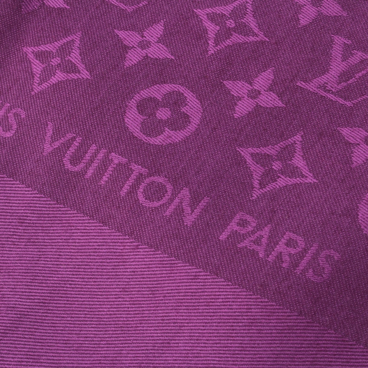 ルイヴィトン シルク ウール モノグラム シャイン マフラー ショール パープル