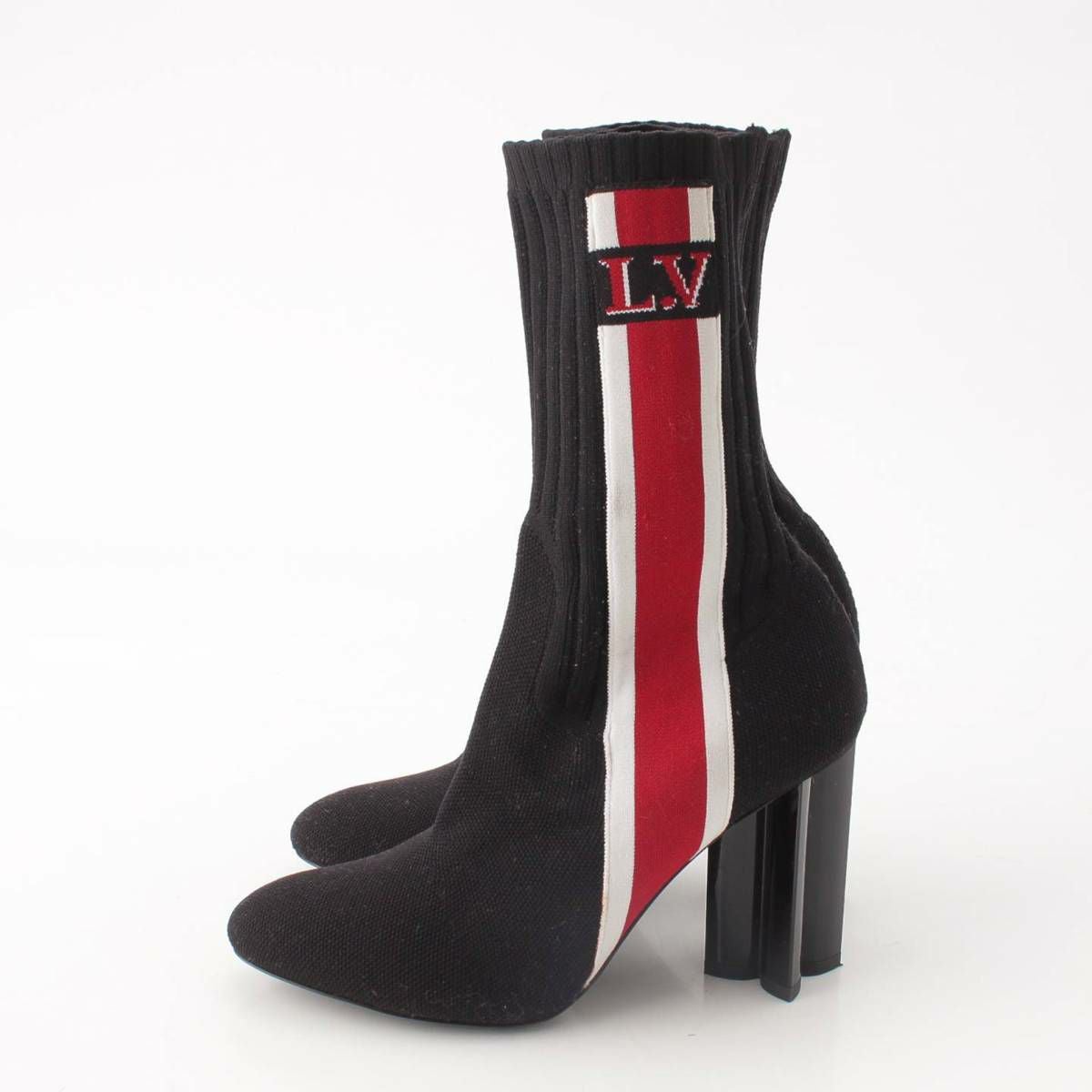 ルイヴィトン ロゴ シルエットライン ニット ソックス ヒール ショートブーツ ブラック 35