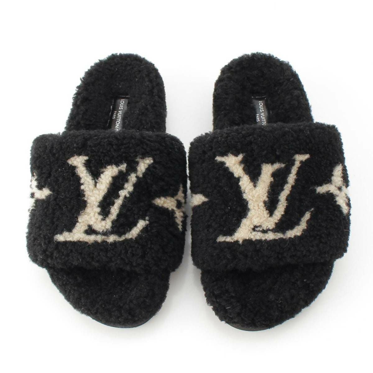 ルイヴィトン Louis Vuitton パセオライン LVロゴ ボア フラット サンダル ブラック 36