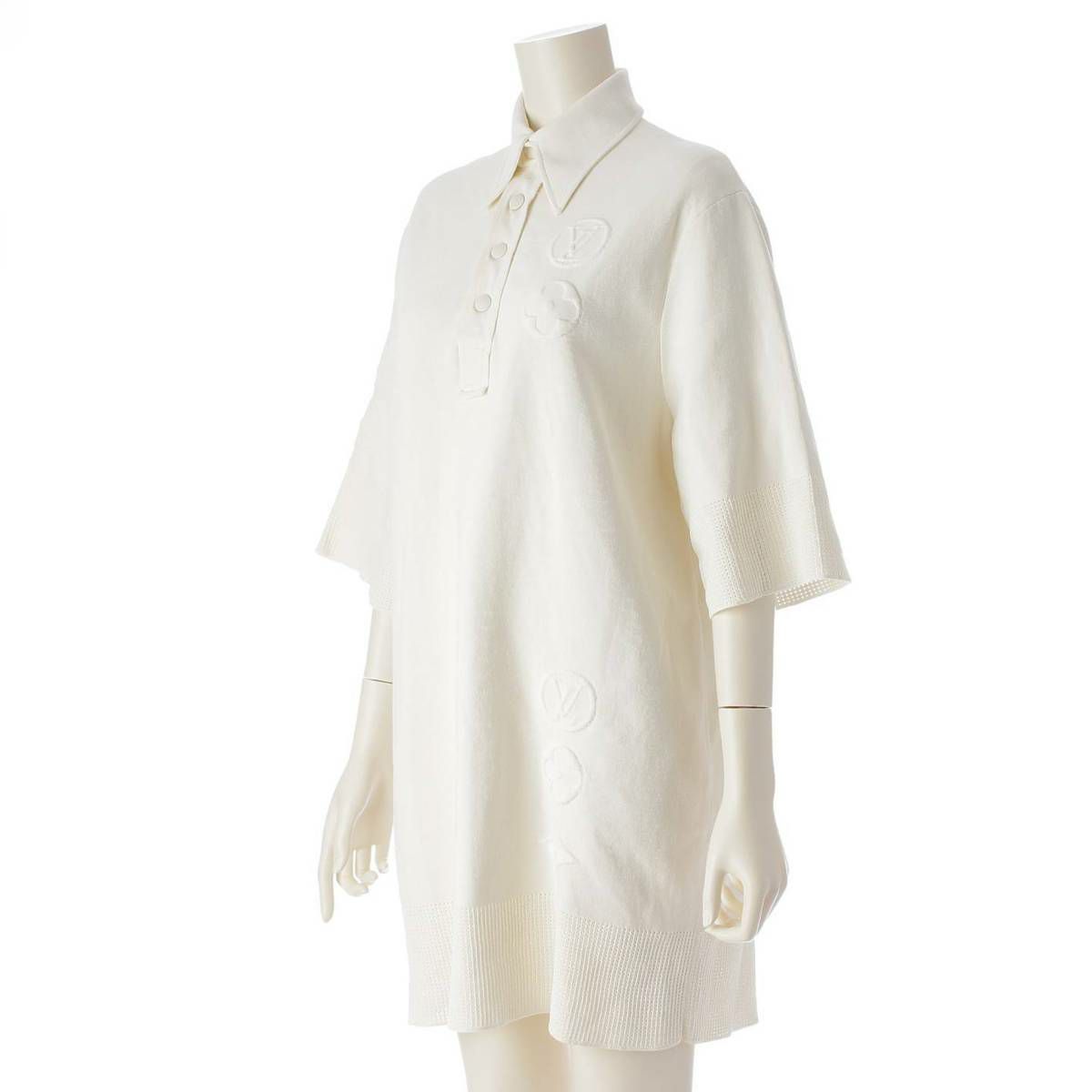 ルイヴィトン 22年 コットン ロゴ エンボス メッシュ 半袖 ポロ ワンピース トップス RW221W LN8 FMKD10 アイボリー XS