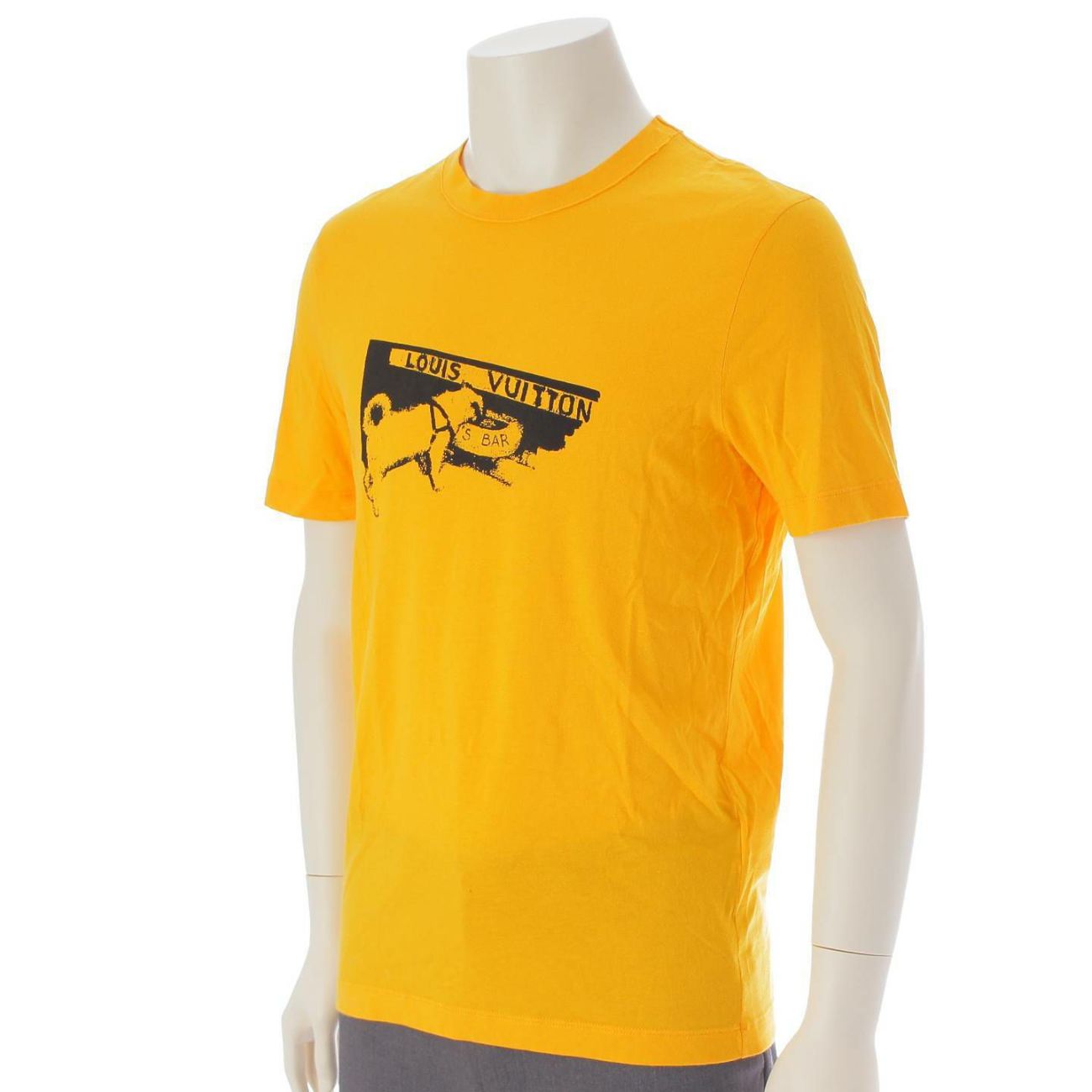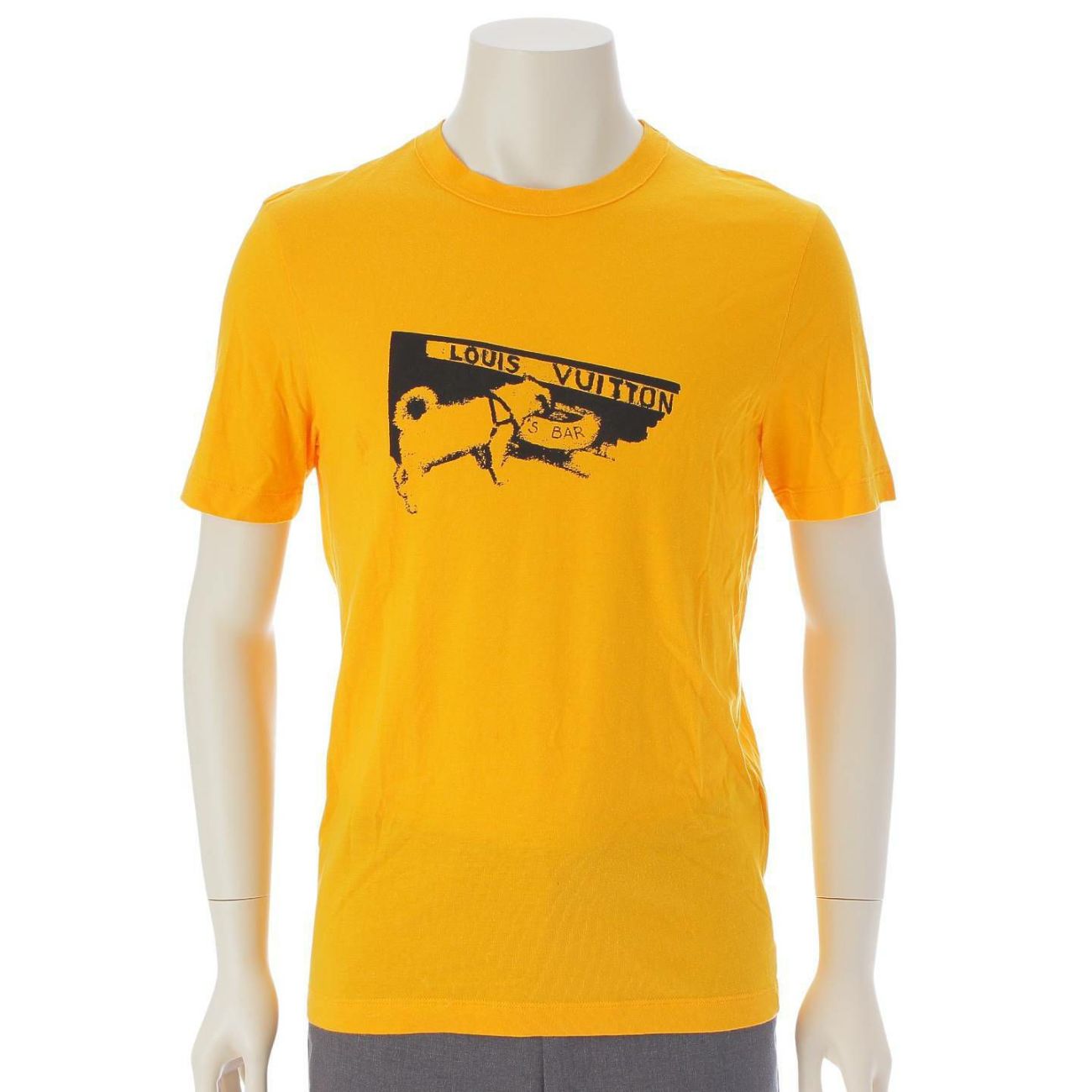 ルイヴィトン メンズ コットン プリント Tシャツ ドッグ 犬 ロゴ RM101M MQJR08JEU イエロー S