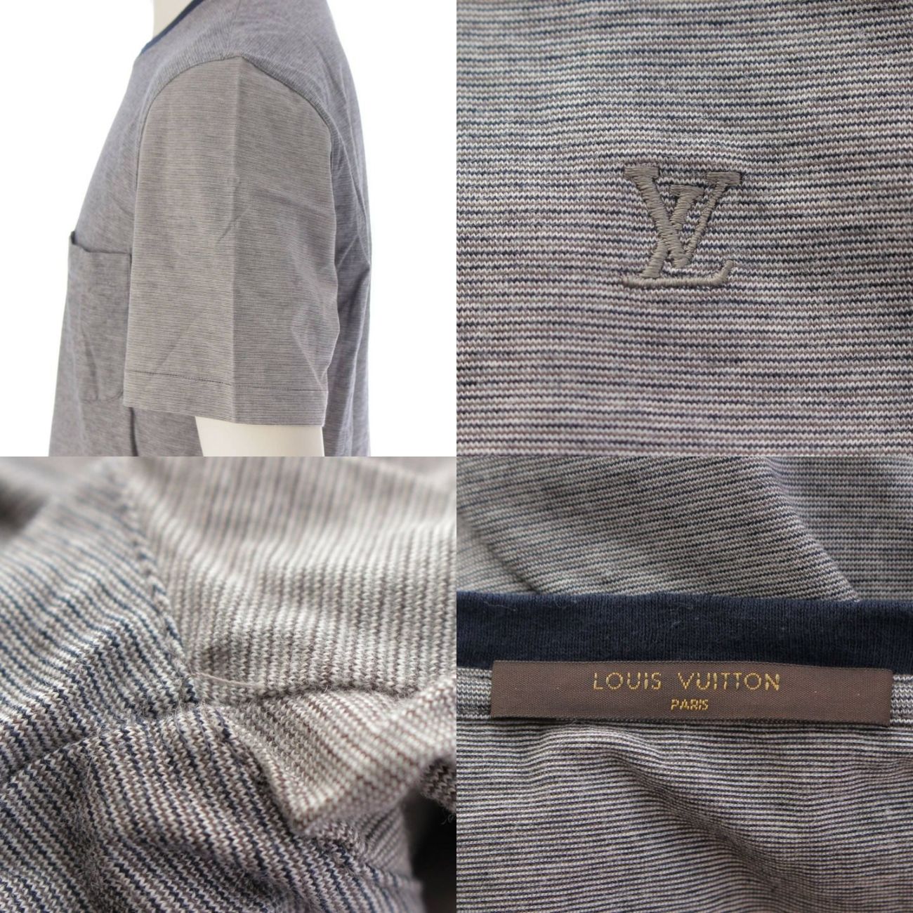 ルイヴィトン メンズ Tシャツ 胸ポケット付き LVロゴ 刺しゅう カットソー トップス グレー