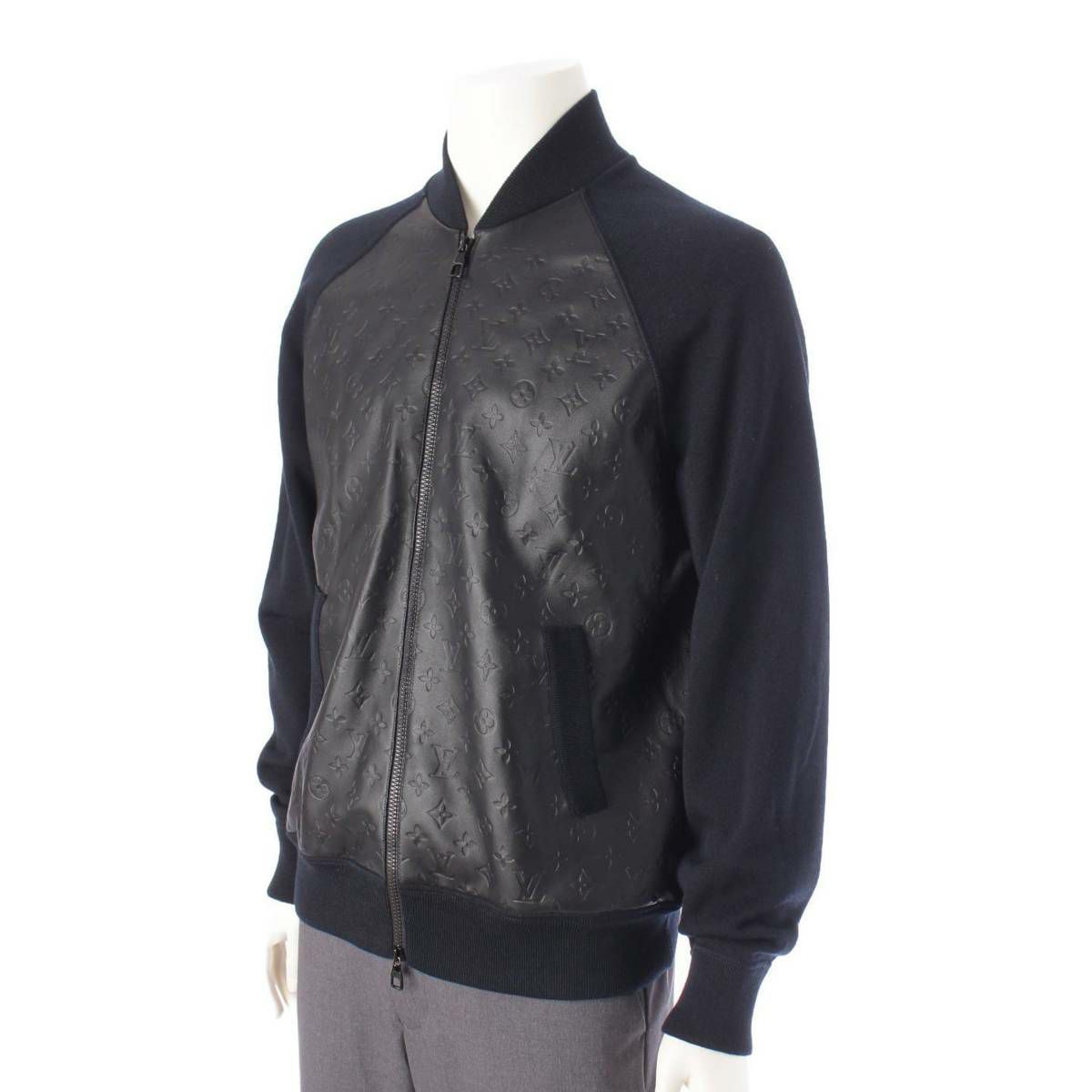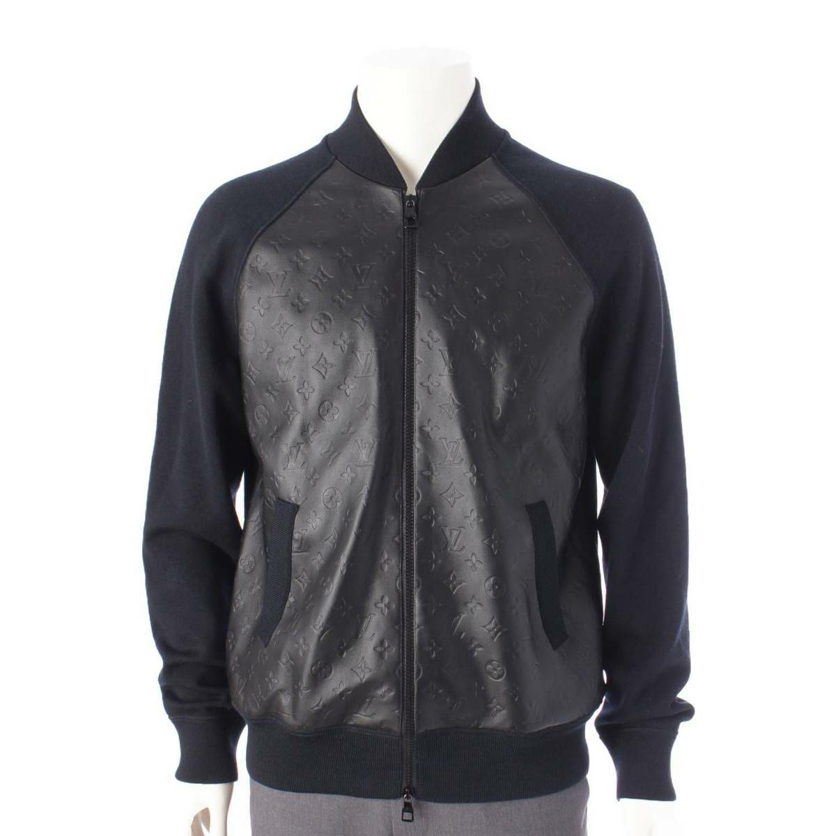 ルイヴィトン メンズ レザー ニット切り替え ジャケット ブルゾン 1ABJ1T HPN14WVOR ブラック XS